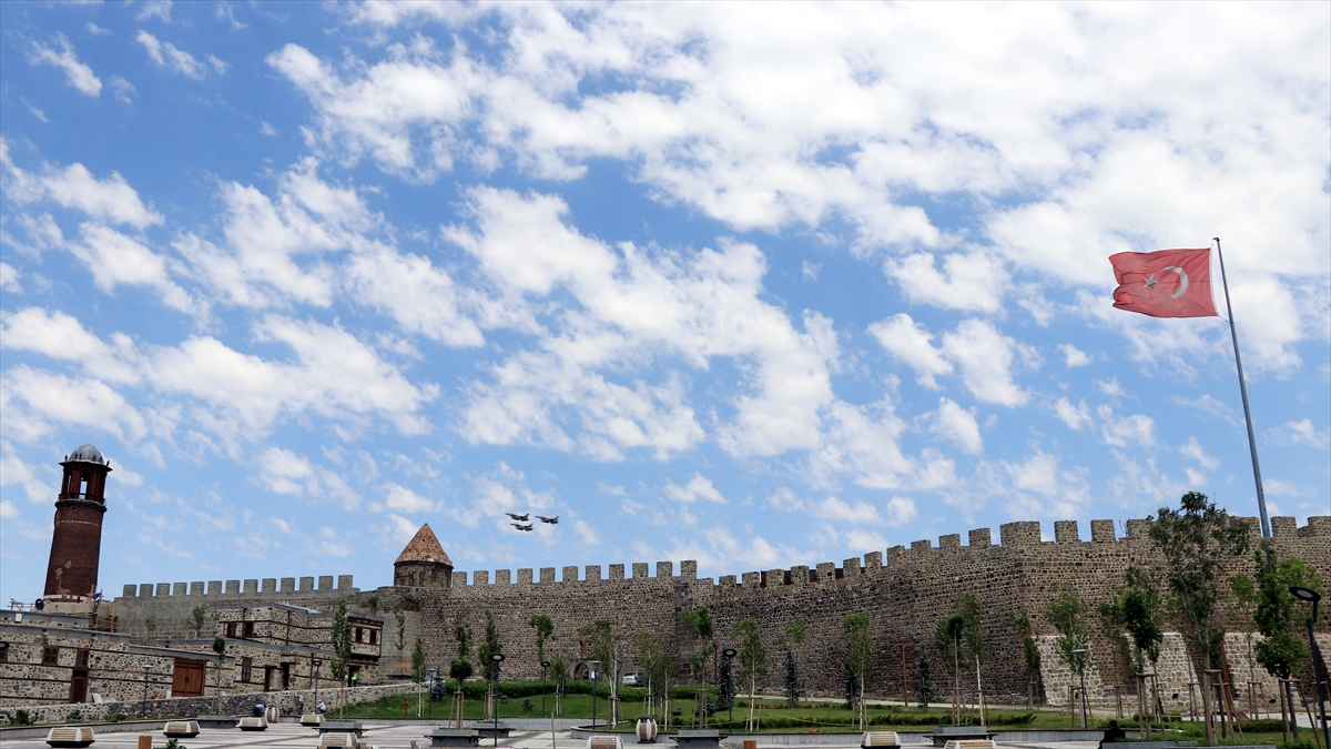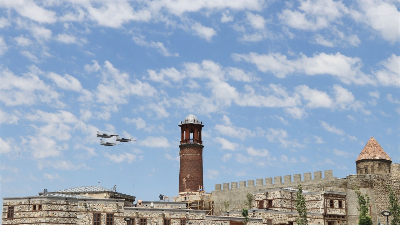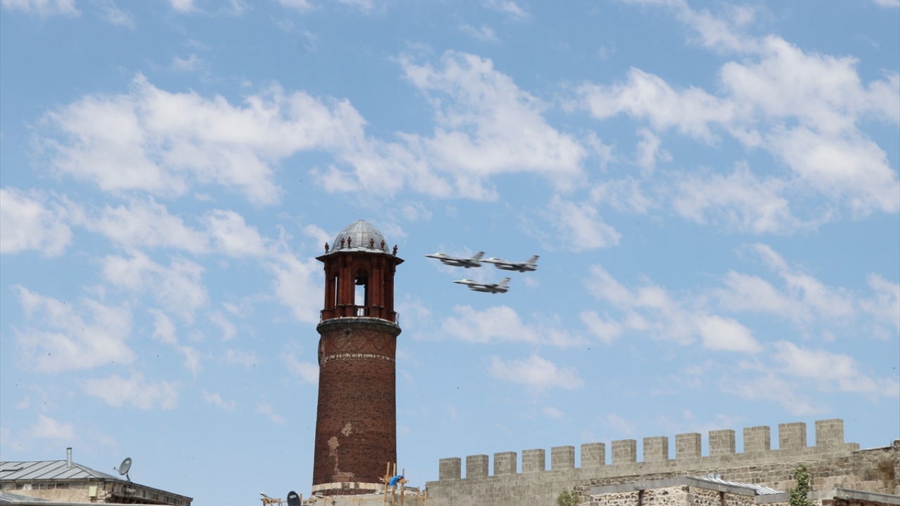 Erzurum Kongresi'nin 101. yıl dönümü kutlama etkinliklerinde, F-16'lar kent üzerinde gösteri uçuşu yaptı.