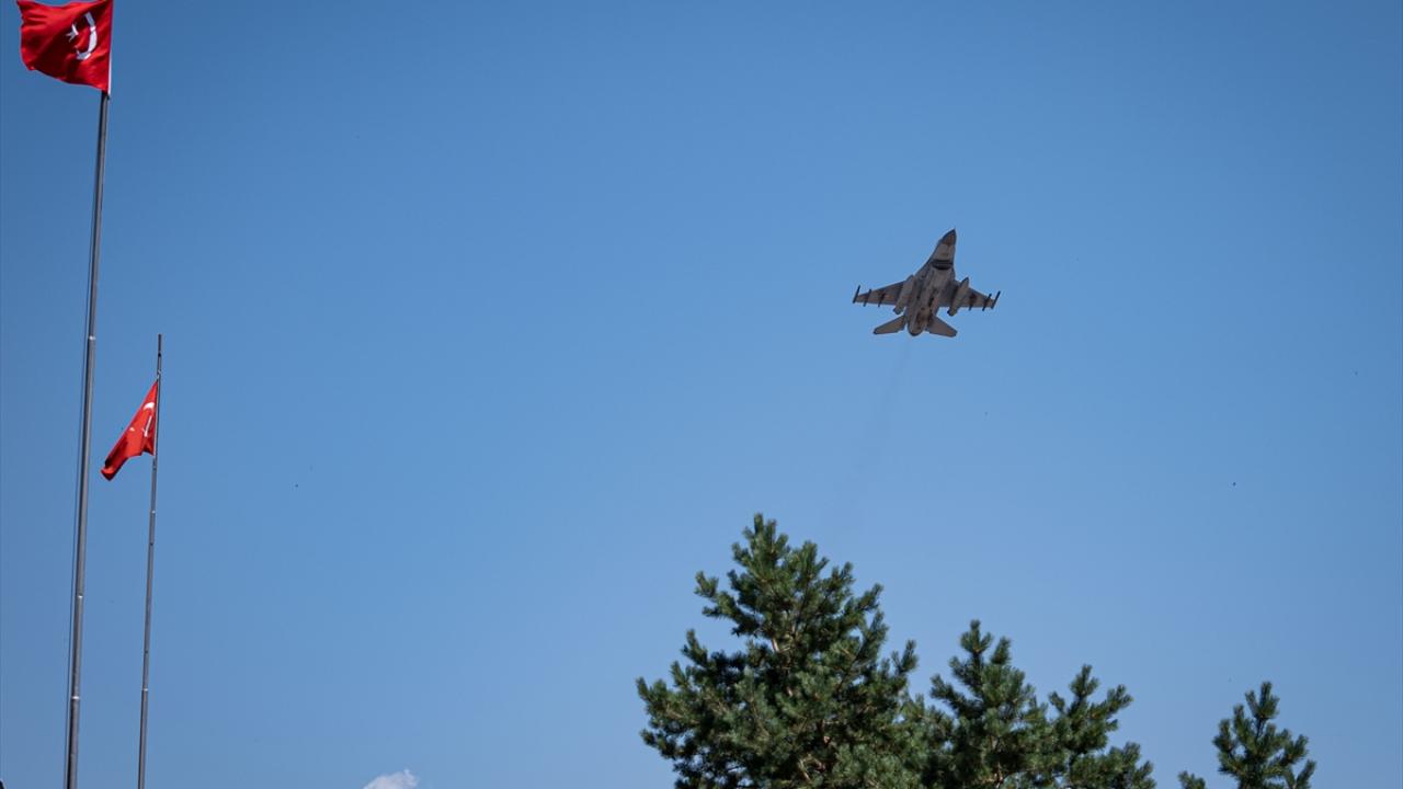 Hava Kuvvetleri Komutanlığına bağlı 3 muharip uçak, program kapsamında kongre binasının üzerinden 3 kere geçiş yaptı.