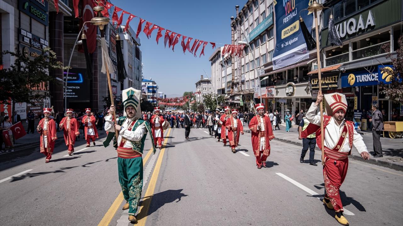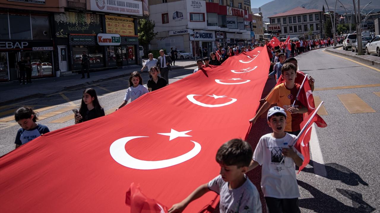 Saygı duruşu ve İstiklal Marşı`nın okunmasıyla devam eden programda protokol ve vatandaşlar, mehter takımı eşliğinde ellerinde Türk bayraklarıyla Erzurum Kongre Binası`na kadar yürüdü.