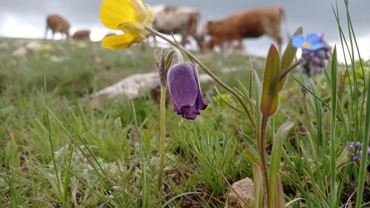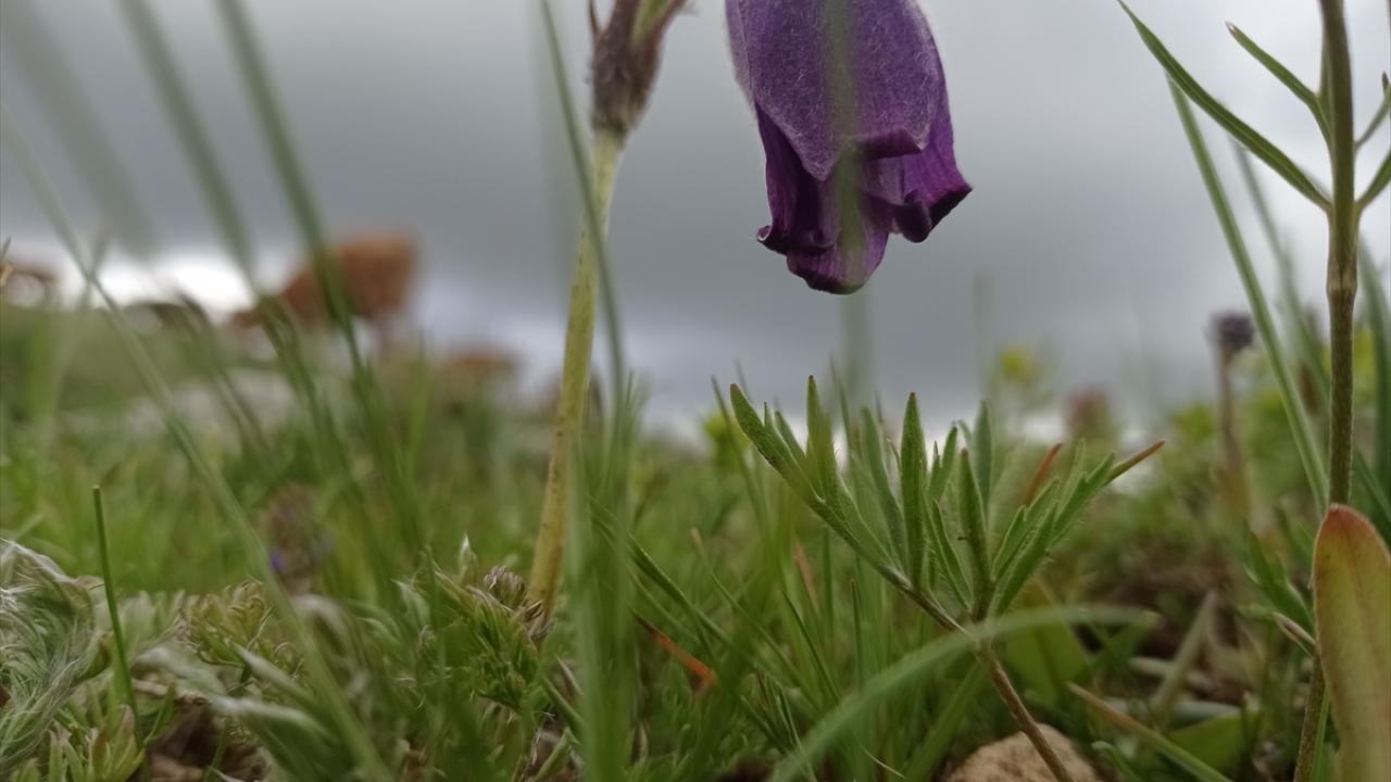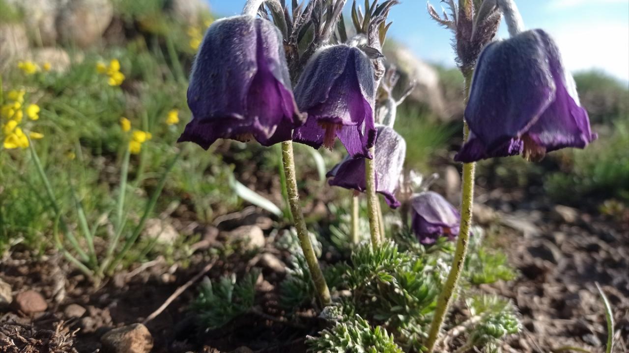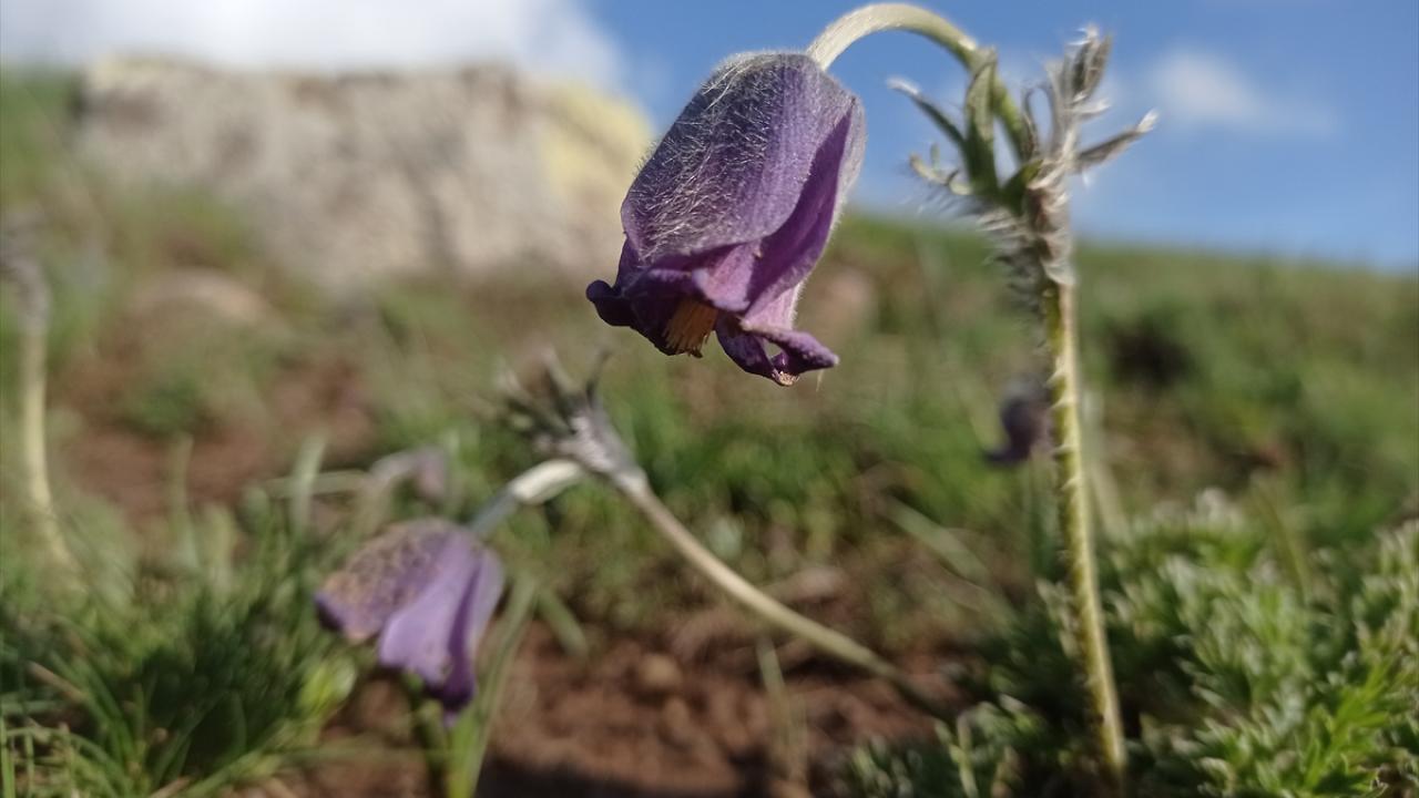 Türkiye'nin en yüksek rakımlı yerleşim yerlerinden Erzurum'un Karayazı ilçesi Turnagöl Mahallesi, ilkbaharda açan mor ters lalelerle renklendi.