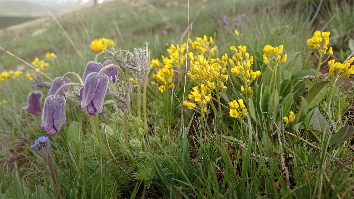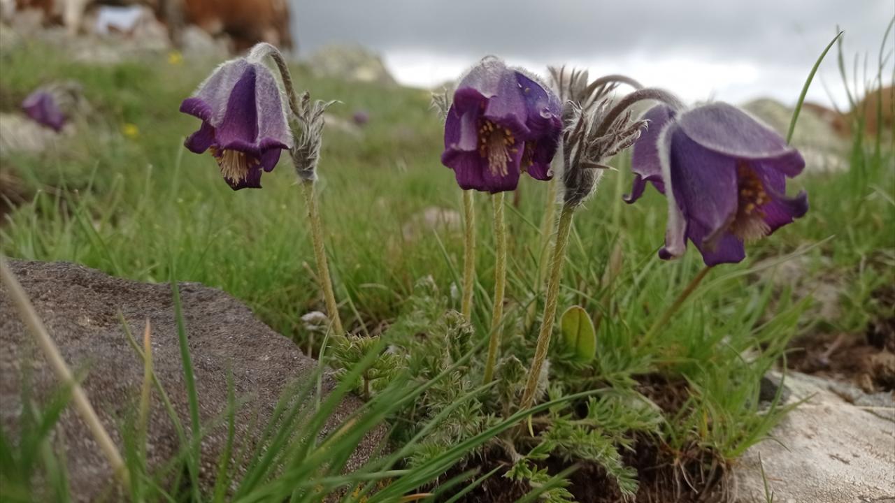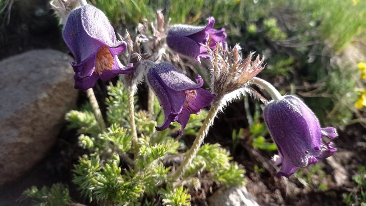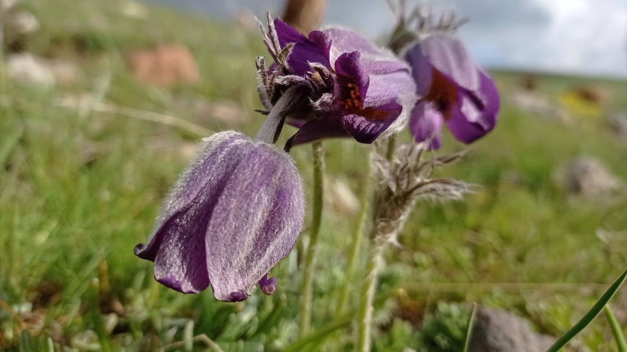 Türkiye'nin en yüksek rakımlı yerleşim yerlerinden Erzurum'un Karayazı ilçesi Turnagöl Mahallesi, ilkbaharda açan mor ters lalelerle renklendi.