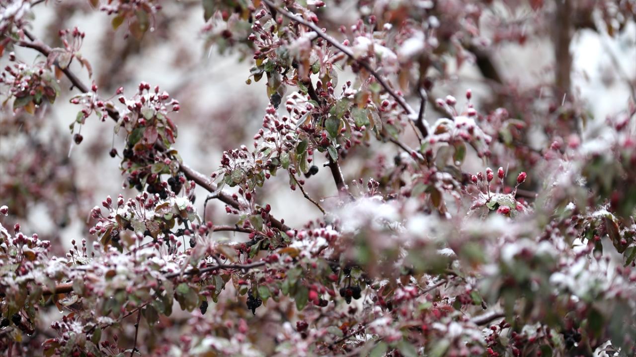 İlkbahar mevsiminin son ayında, araçların üzeri ve çatılar kısmen beyaza büründü.