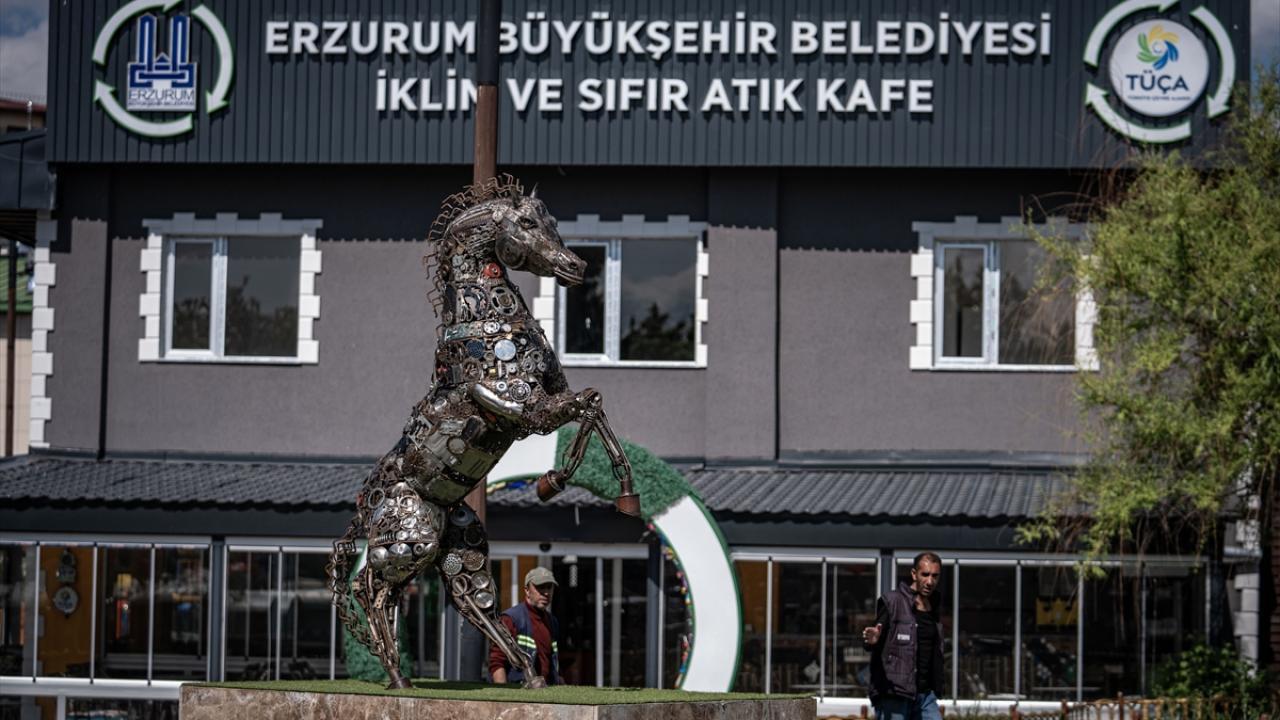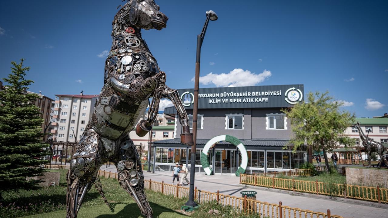 Erzurum Büyükşehir Belediyesine bağlı atölyelerden çıkarılan atık parçalarla, vatandaşların geri dönüşüm farkındalığını artırmak için 1 yıllık çalışmanın ardından İklim ve Sıfır Atık Kafe kuruldu.