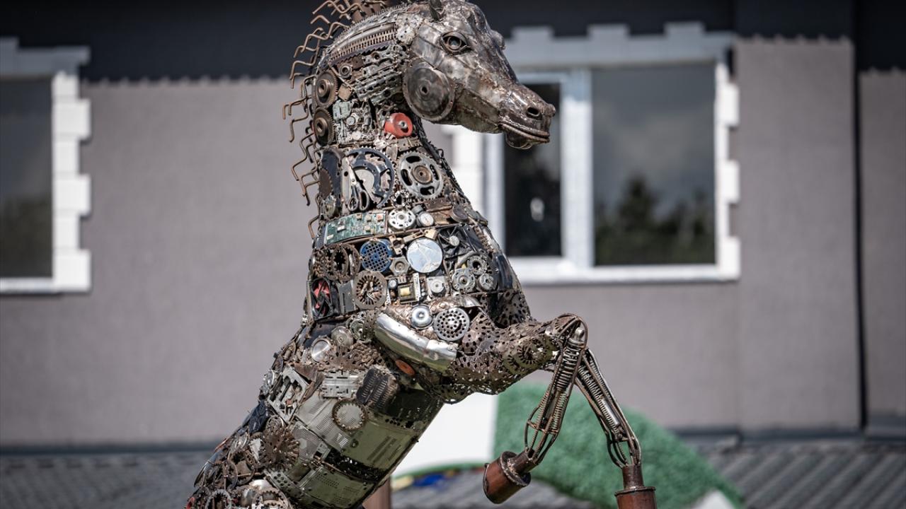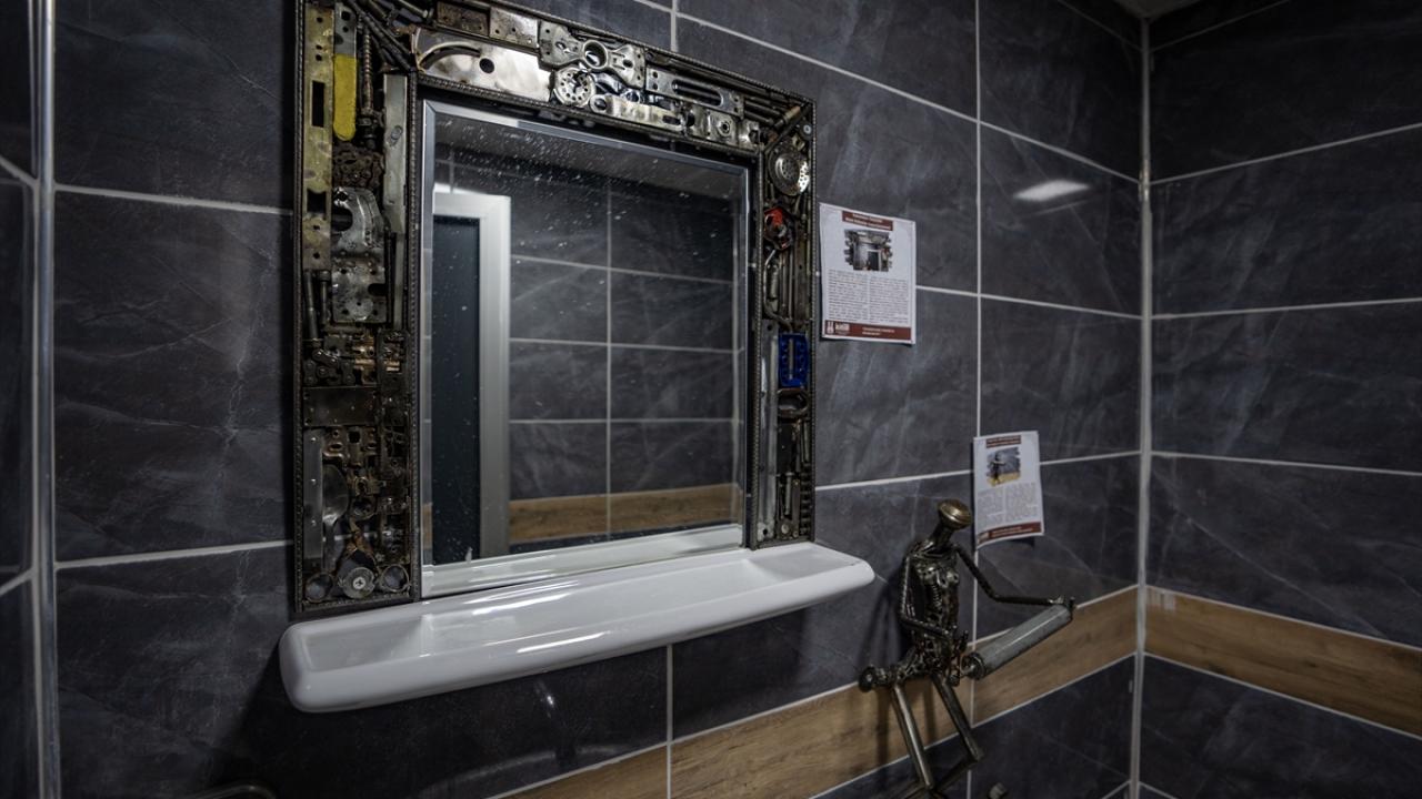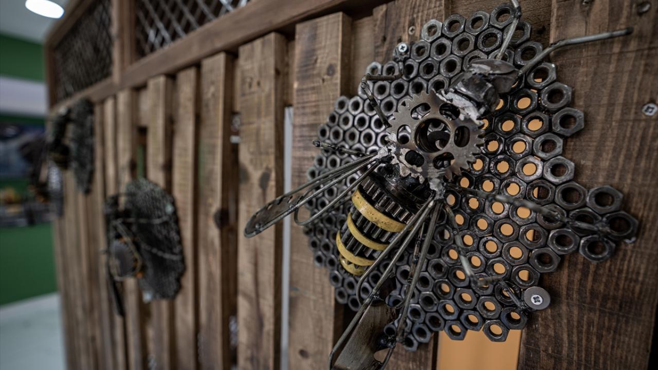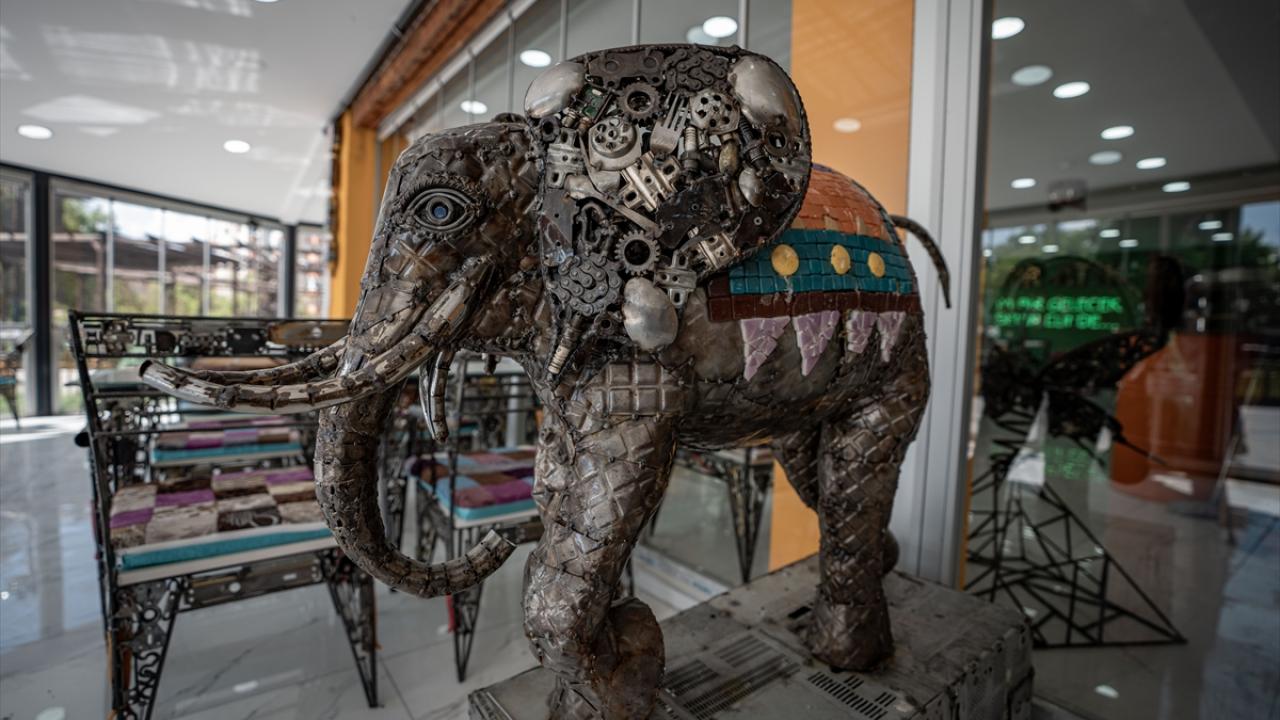 Atık metallerden masa, sandalye, biblolar, piller ile kablolardan tabloların yer aldığı kafenin yapımı yaklaşık 1 yıl sürdü.