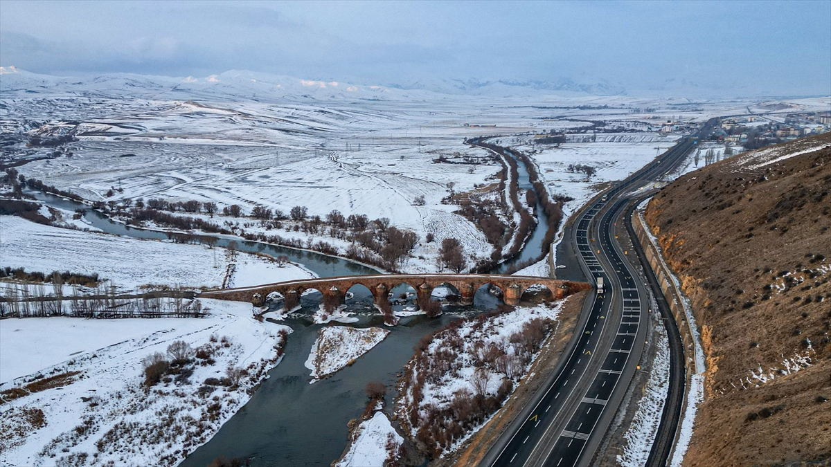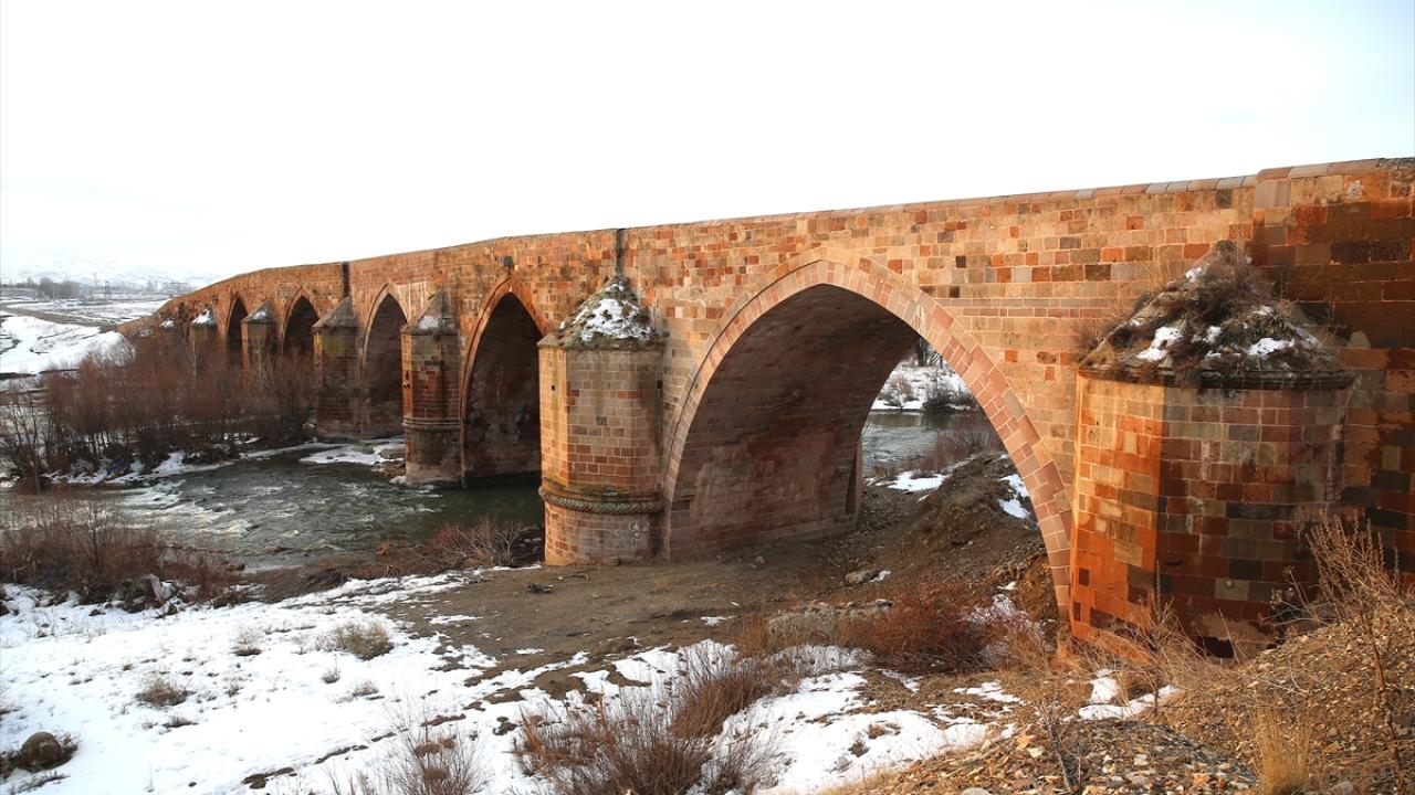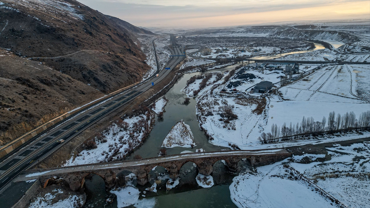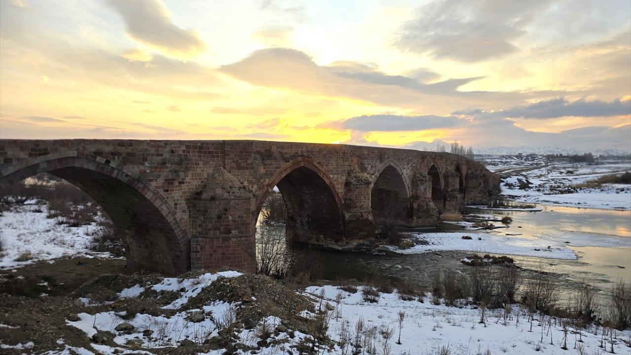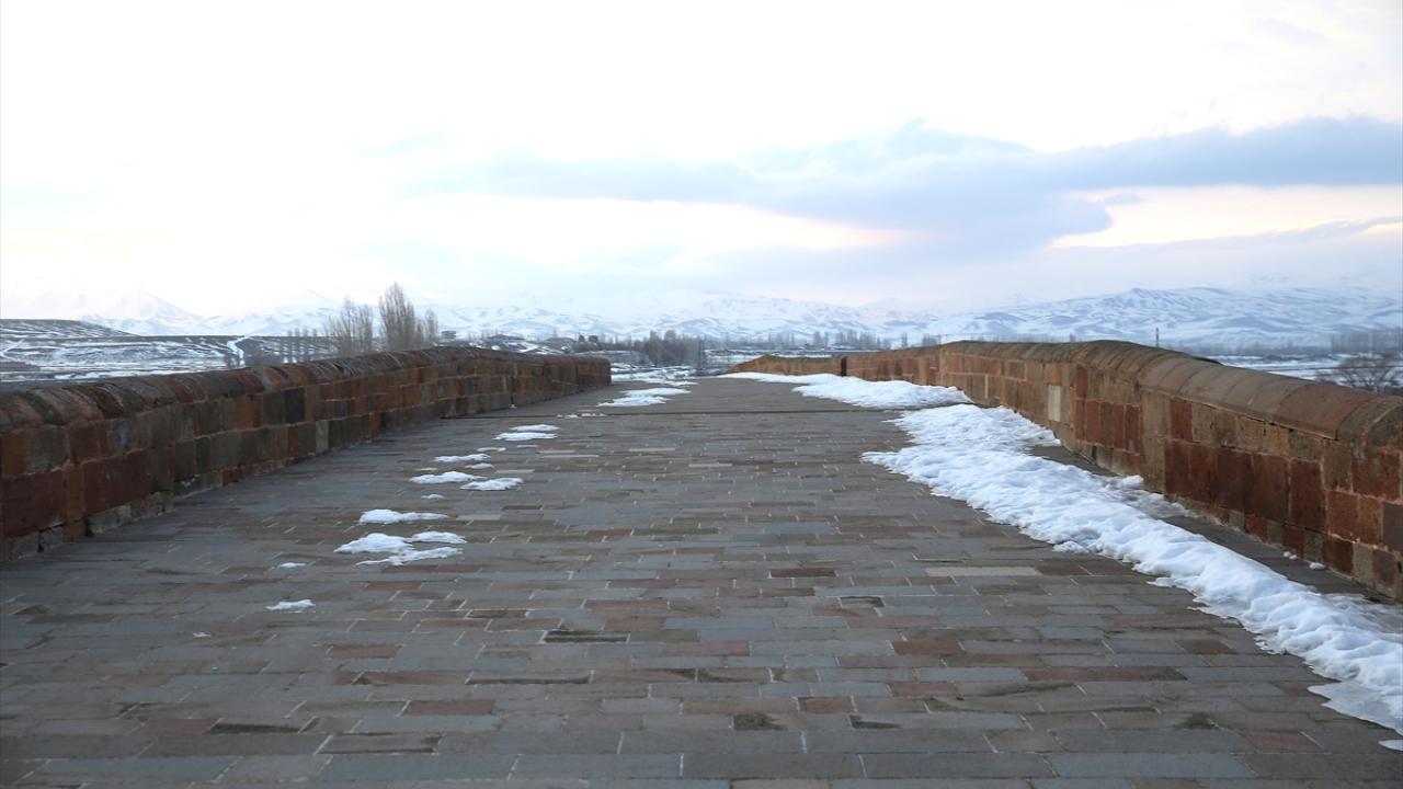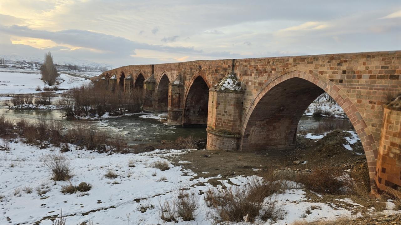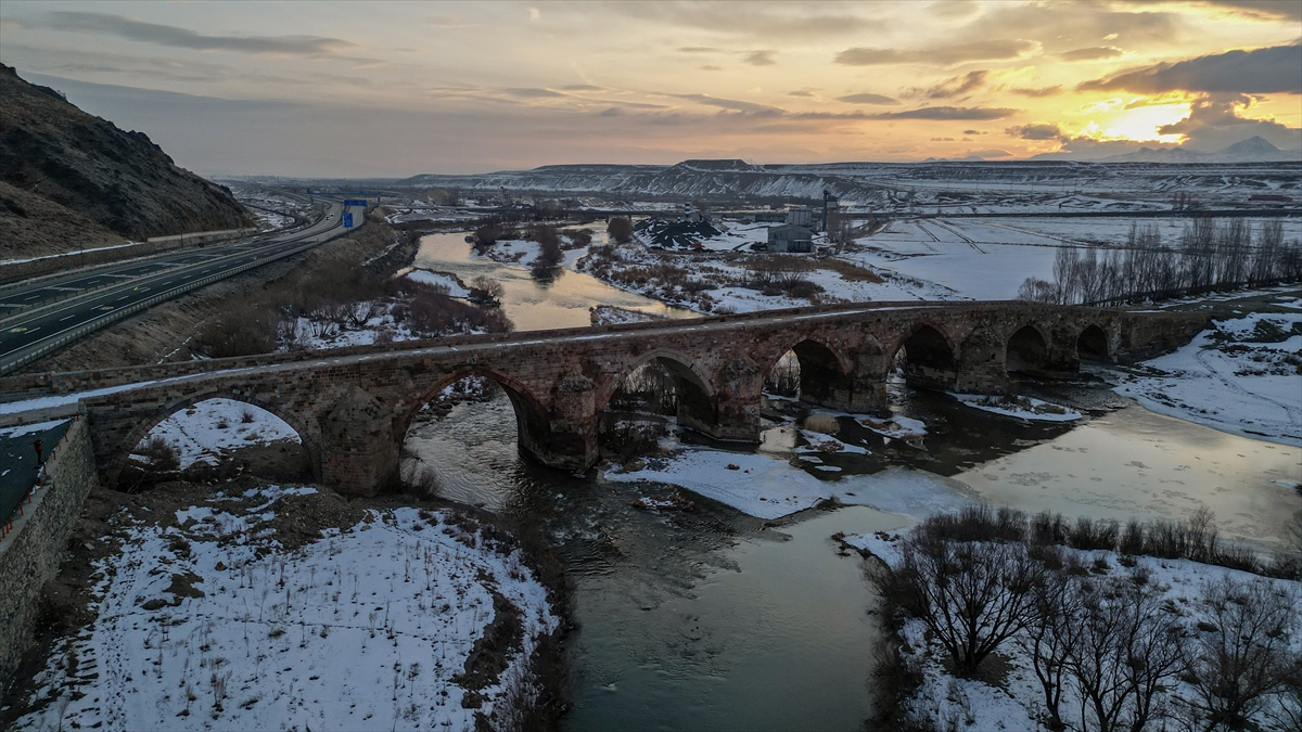 Erzurum'da çevresi karla kaplanan 728 yıllık tarihi köprü güzel görüntü oluşturdu