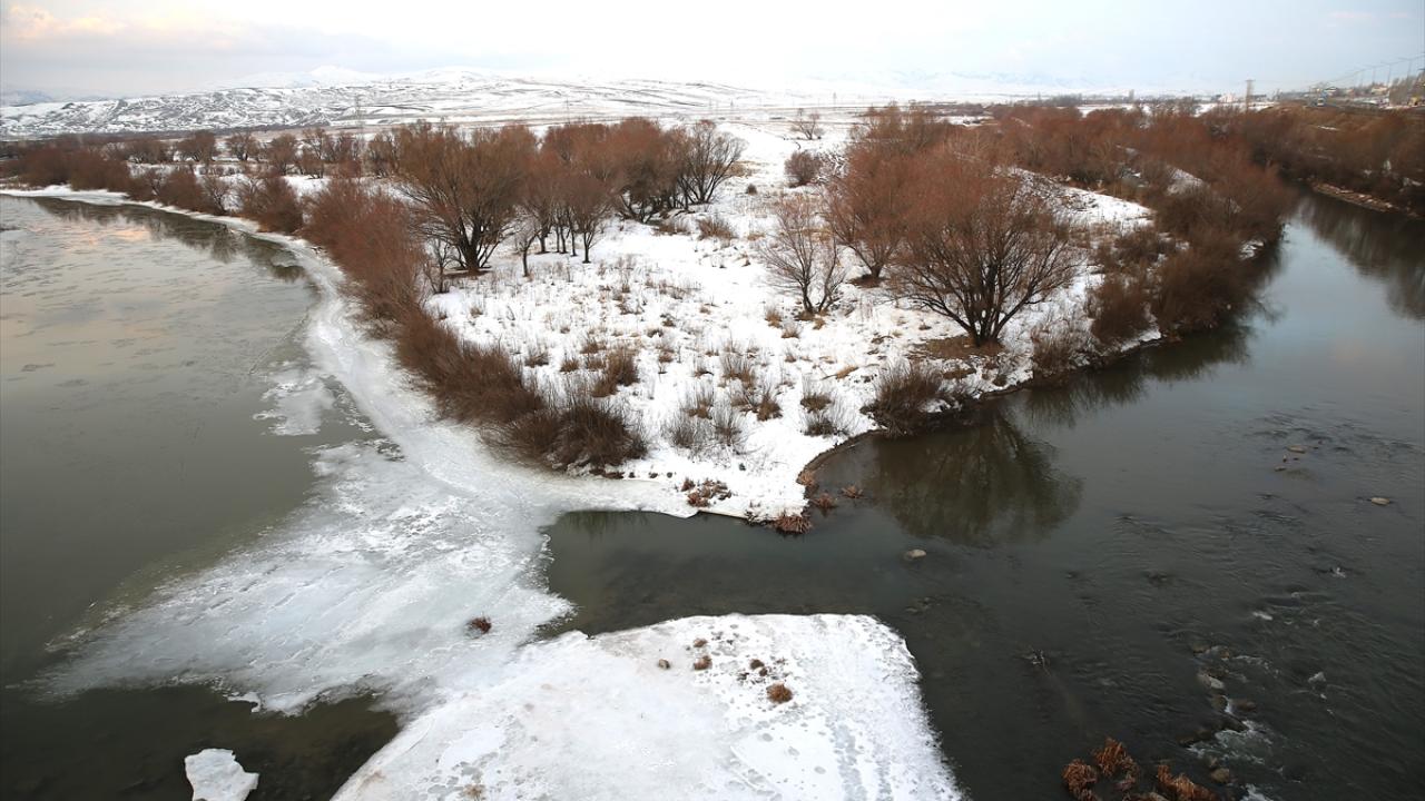 İlhanlı Devleti döneminde Erzurum'un Köprüköy ilçesinde yaptırılan tarihi Çobandede Köprüsü, karla kaplanan çevresi ve altından geçen suyun kısmen buz tutan haliyle güzel görüntü oluşturdu.