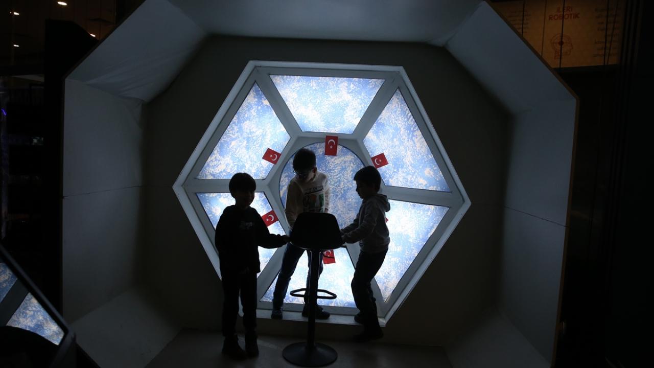 Labirent şeklinde tasarlanan alanlarda çocuklar, uzay tünelinden geçerek uzay çalışmalarıyla ilgili temel bilgilere ulaşıyor.