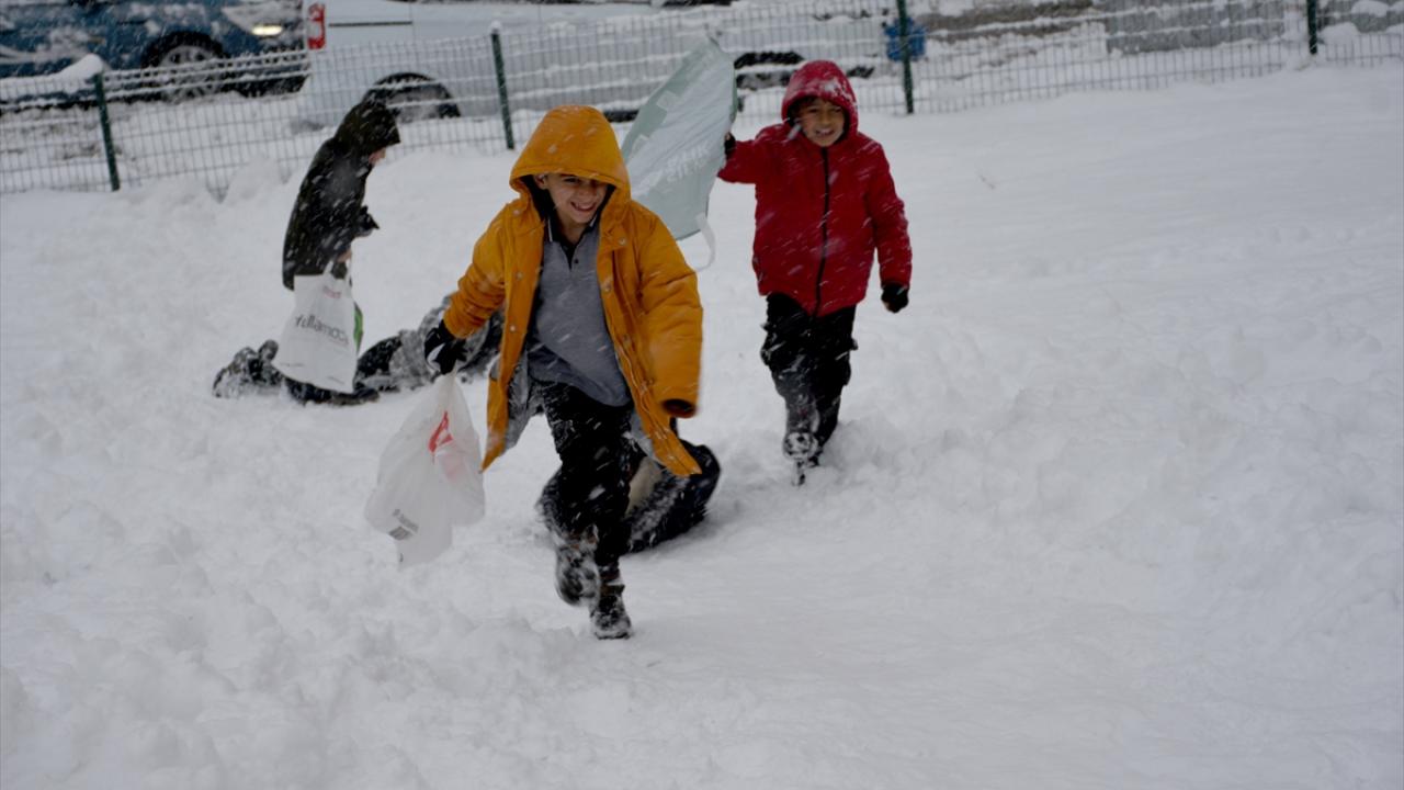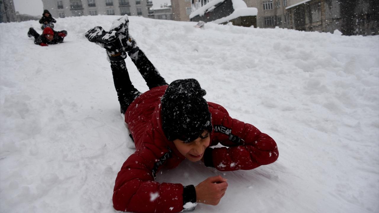 Erzurum'da çocukların kar keyfi