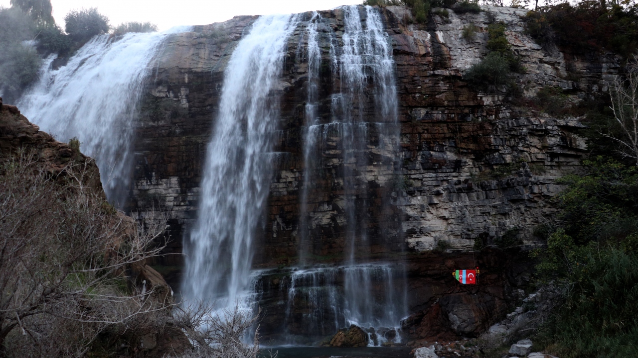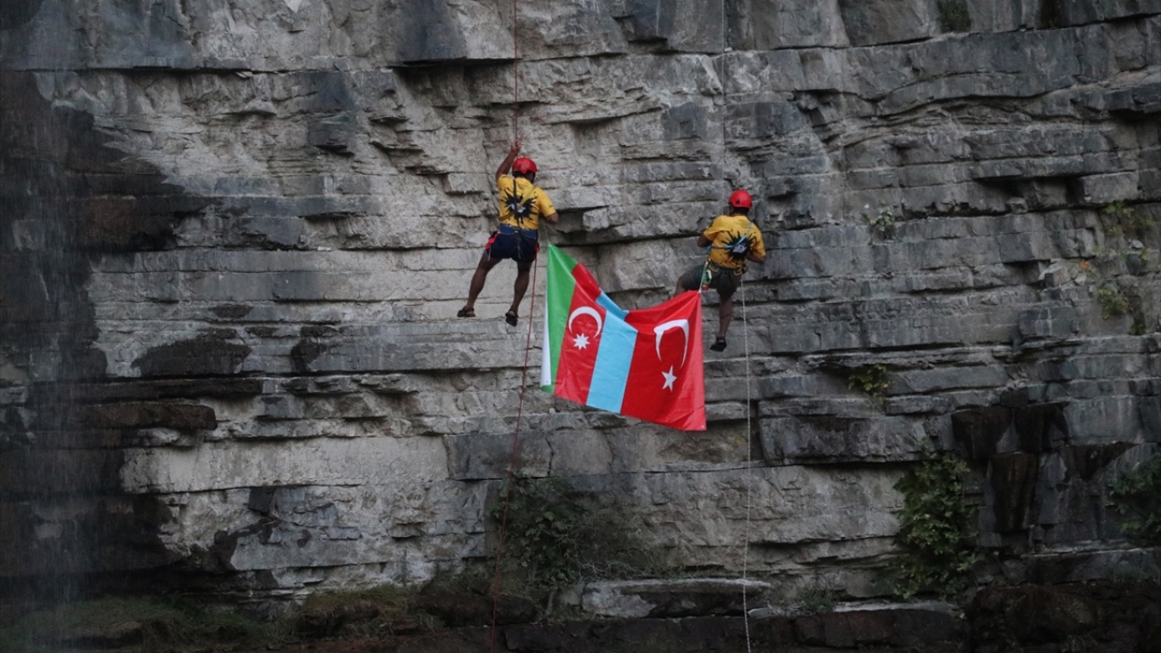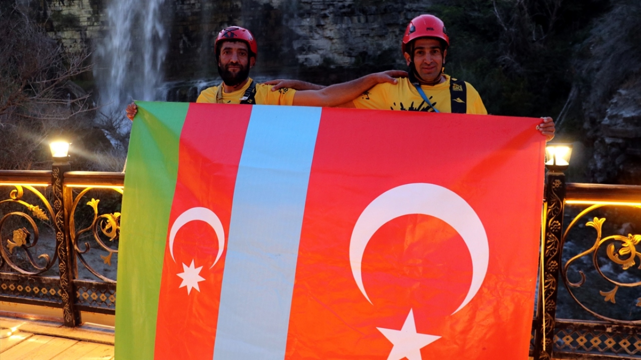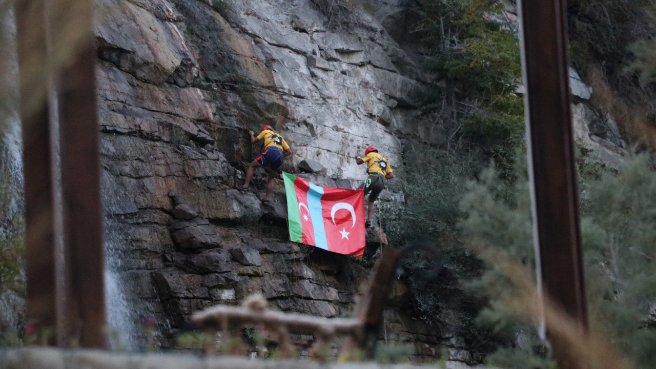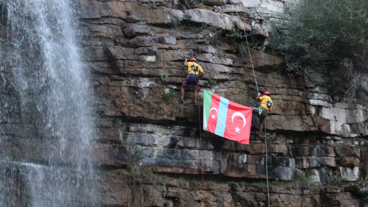 UNESCO'nun Dünya Miras Listesi'ne aday gösterilen ve yılın her döneminde farklı güzelliğe bürünen Erzurum'daki Tortum Şelalesi'nde bir grup dağcı, 48 metre yükseklikteki şelaleden Türkiye ve Azerbaycan bayraklarıyla iniş gerçekleştirdi.