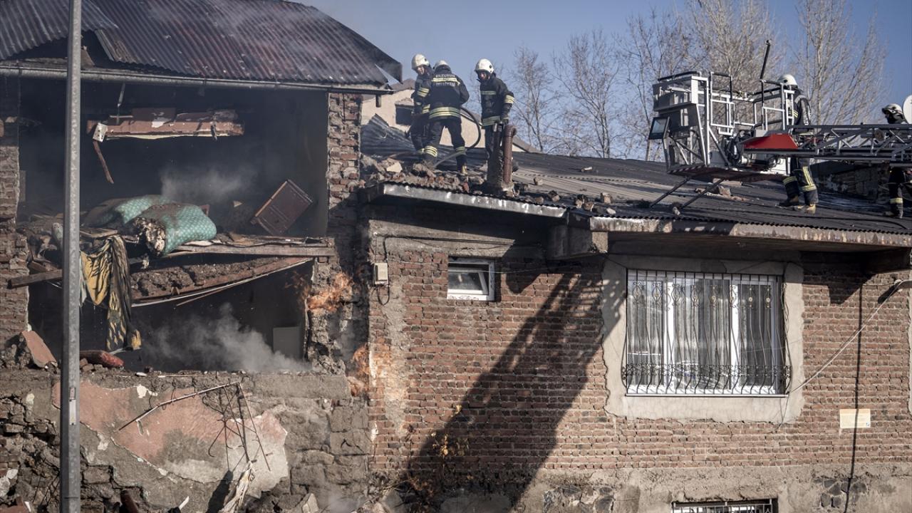 Olayda patlama yaşanan evde büyük çapta hasar oluştu.