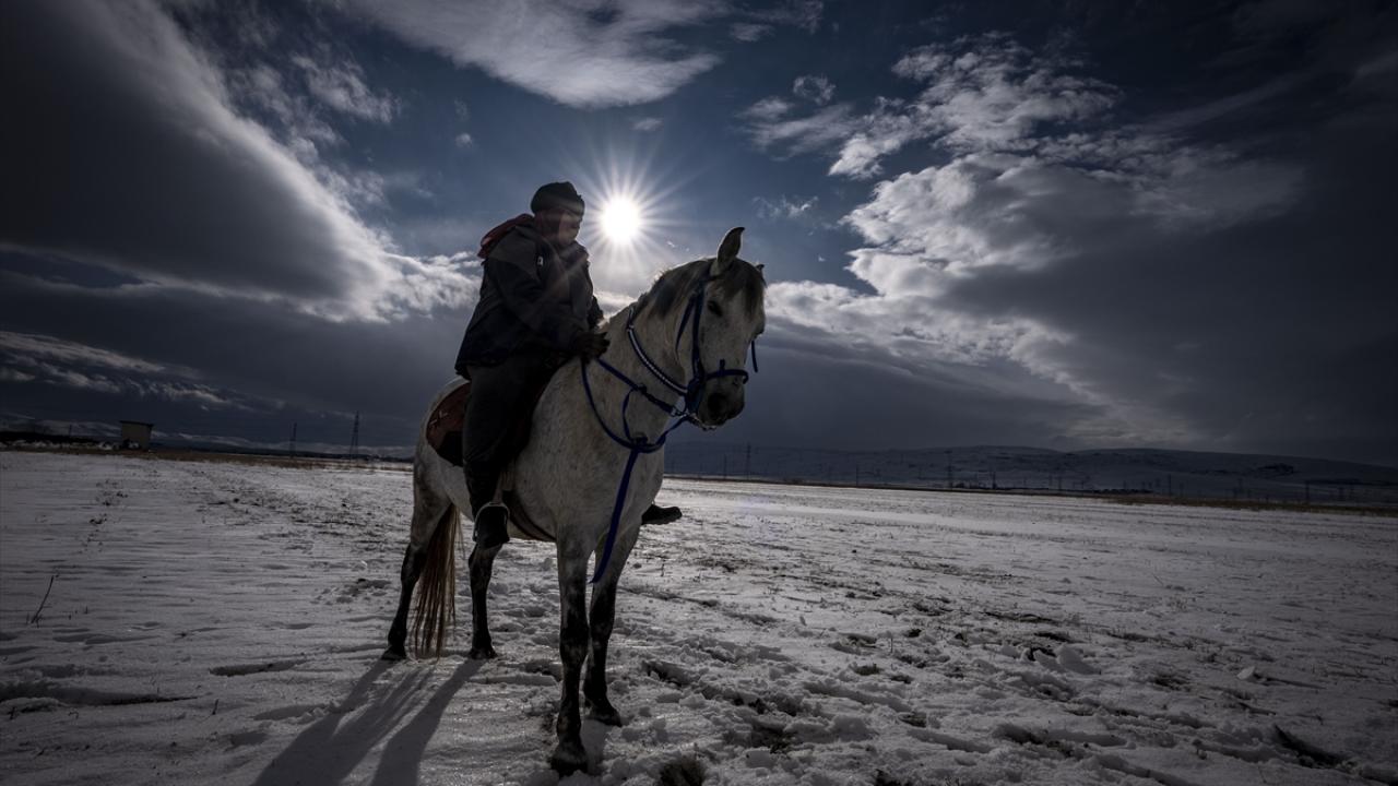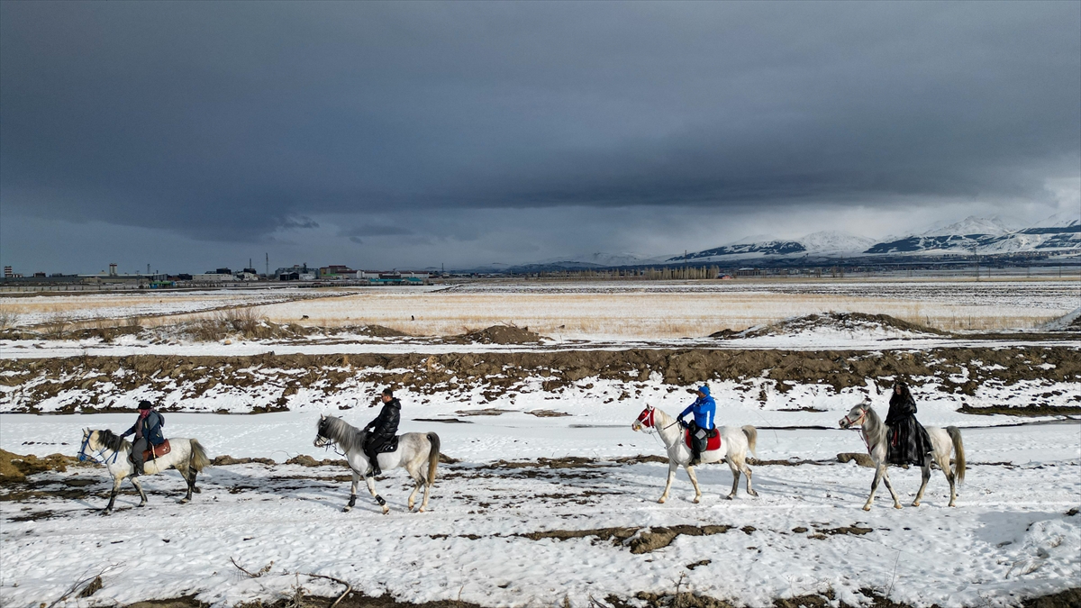 Kış aylarında sert iklimiyle bilinen Erzurum’da, farklı meslek gruplarından biniciler, kar ve buzla kaplı arazide atlı safari yaparak hem stres atıyor hem de doğayla iç içe vakit geçiriyor.