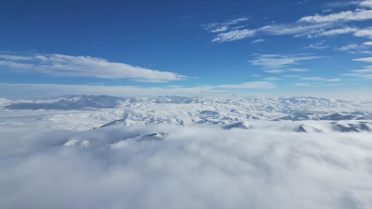 Erzurum'un Karayazı ilçesinde kar yağışı sonrası dağlar, tepeler beyaza büründü.