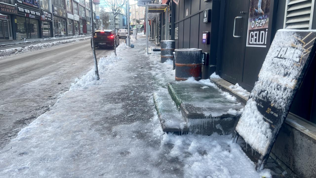 Kentte yol ve kaldırımlarda buzlanma meydana geldi.
