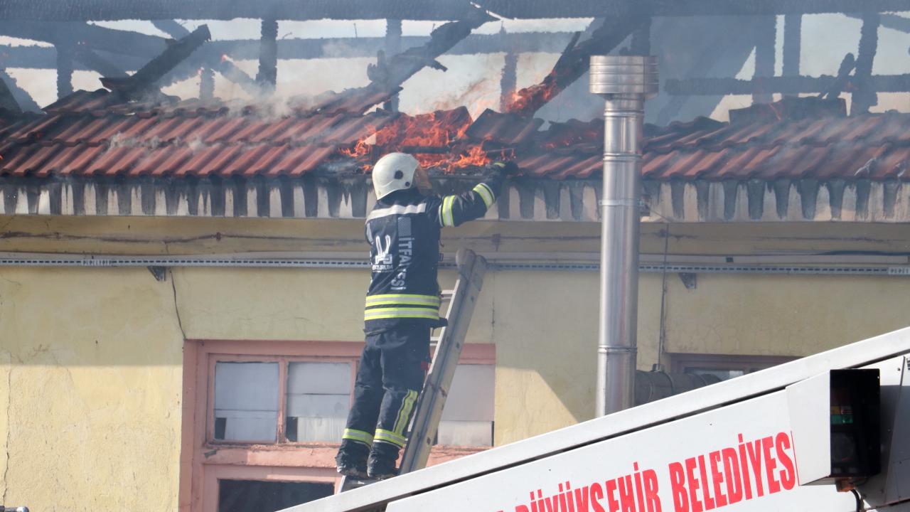 Ekiplerin çalışmasıyla kontrol altına alınarak söndürülen yangın nedeniyle deponun çatısı kullanılamaz hale geldi.