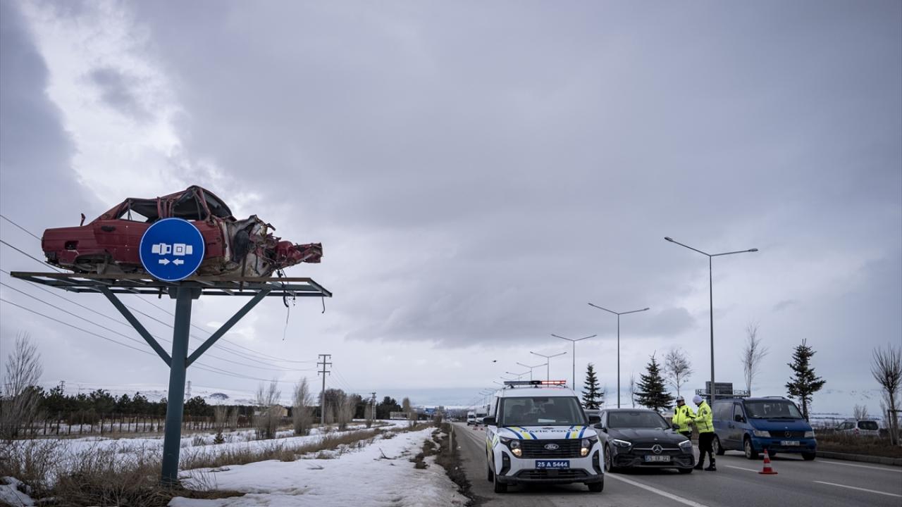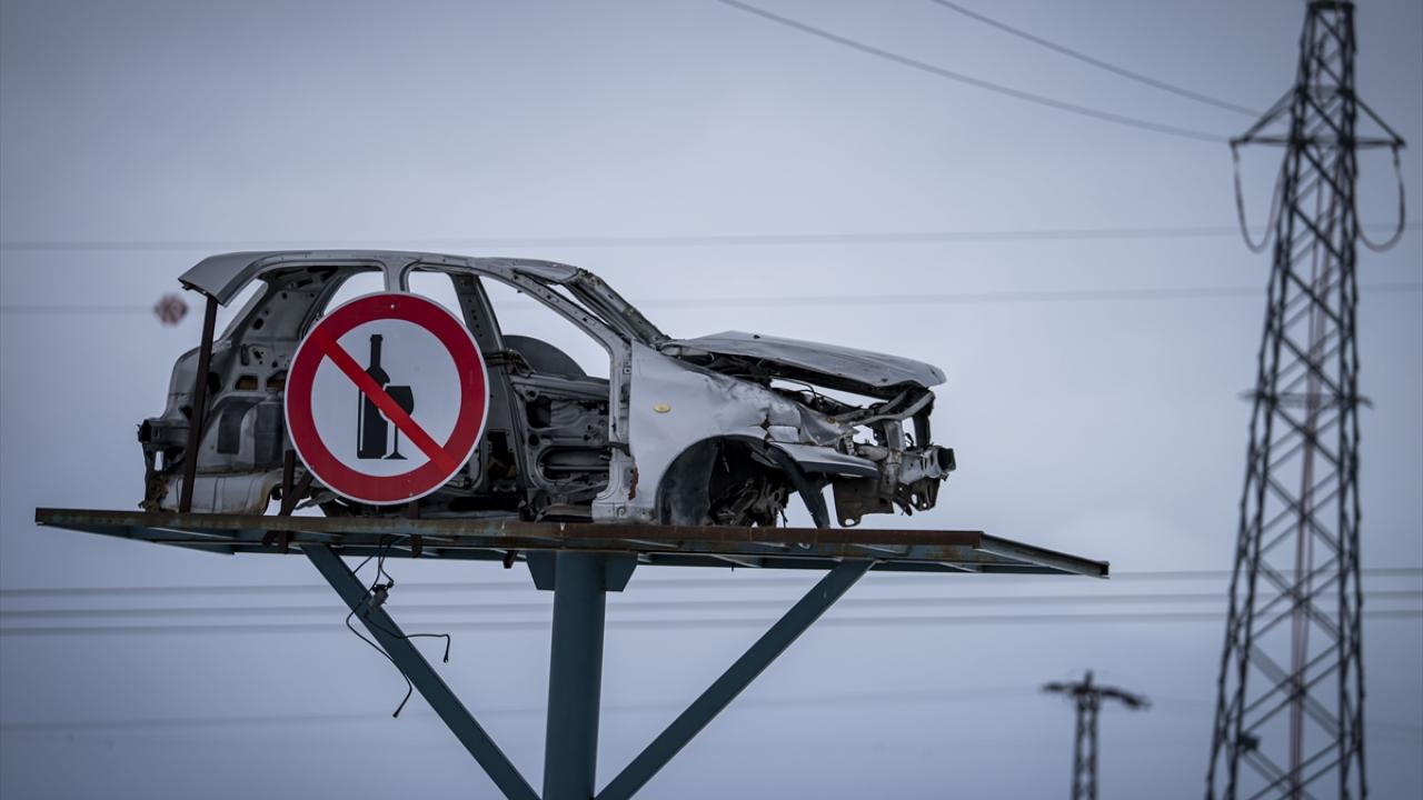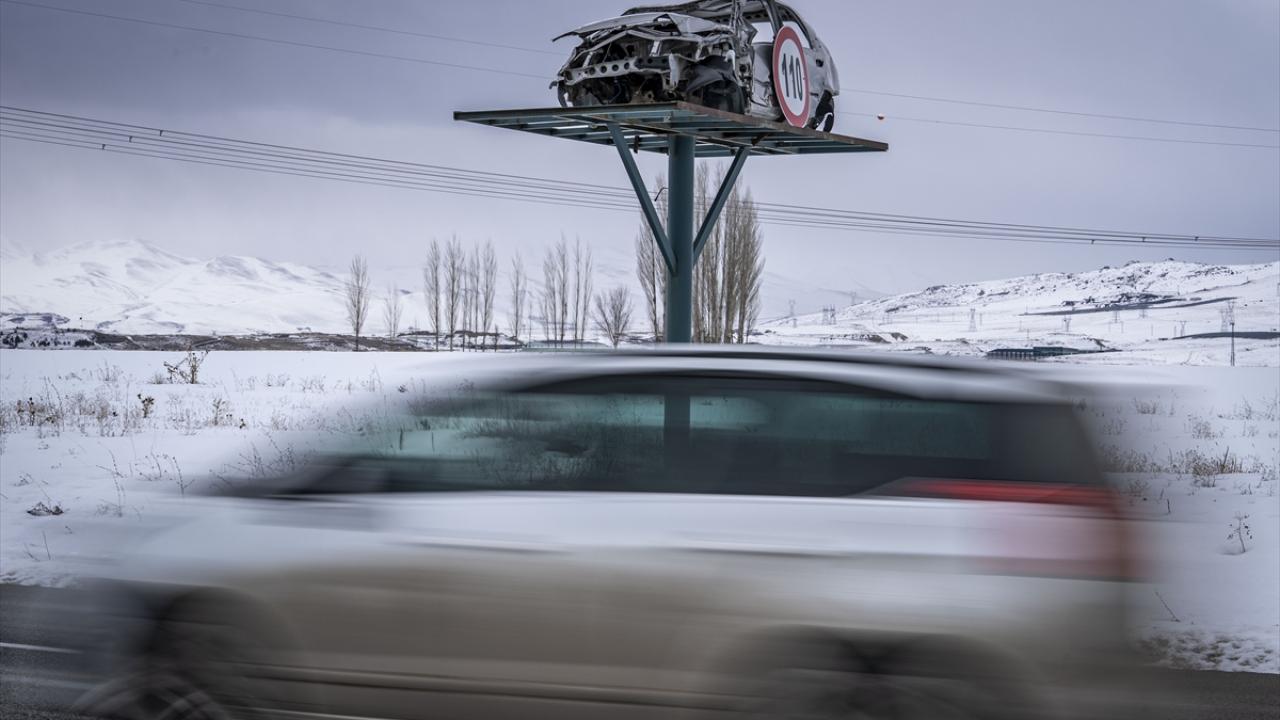 Erzurum’da yol kenarında sergilenen hurda araçlar trafikte farkındalık oluşturuyor