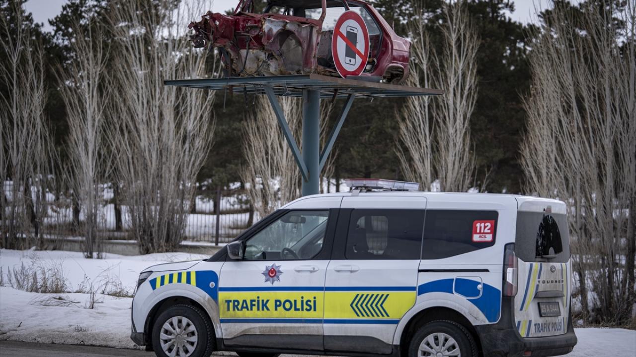 Erzurum’da trafikte kural ihlallerine dikkat çekmek amacıyla yol kenarına yerleştirilen kazalı araçlar, sürücülere bir anlık dikkatsizliğin nelere mal olabileceğini hatırlatıyor.