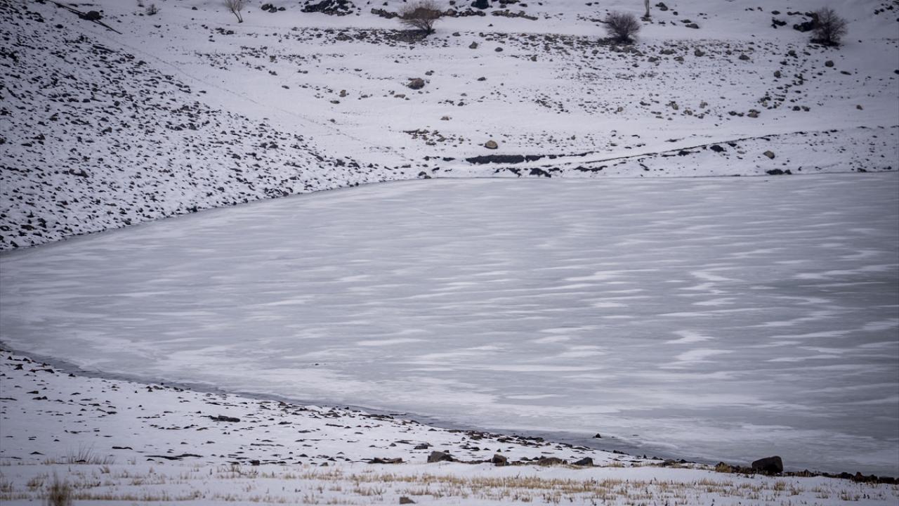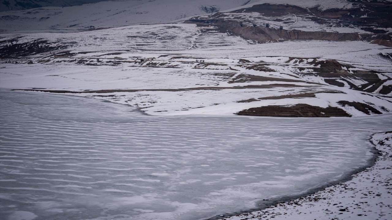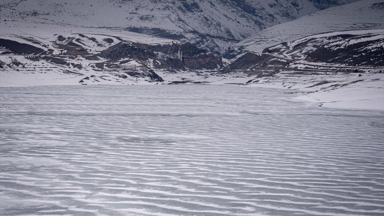 Erzurum'daki Demirdöven Barajı'nın yüzeyi buz tuttu