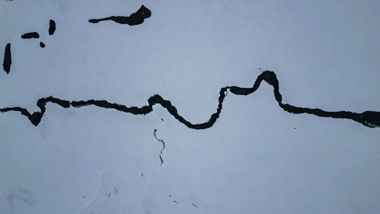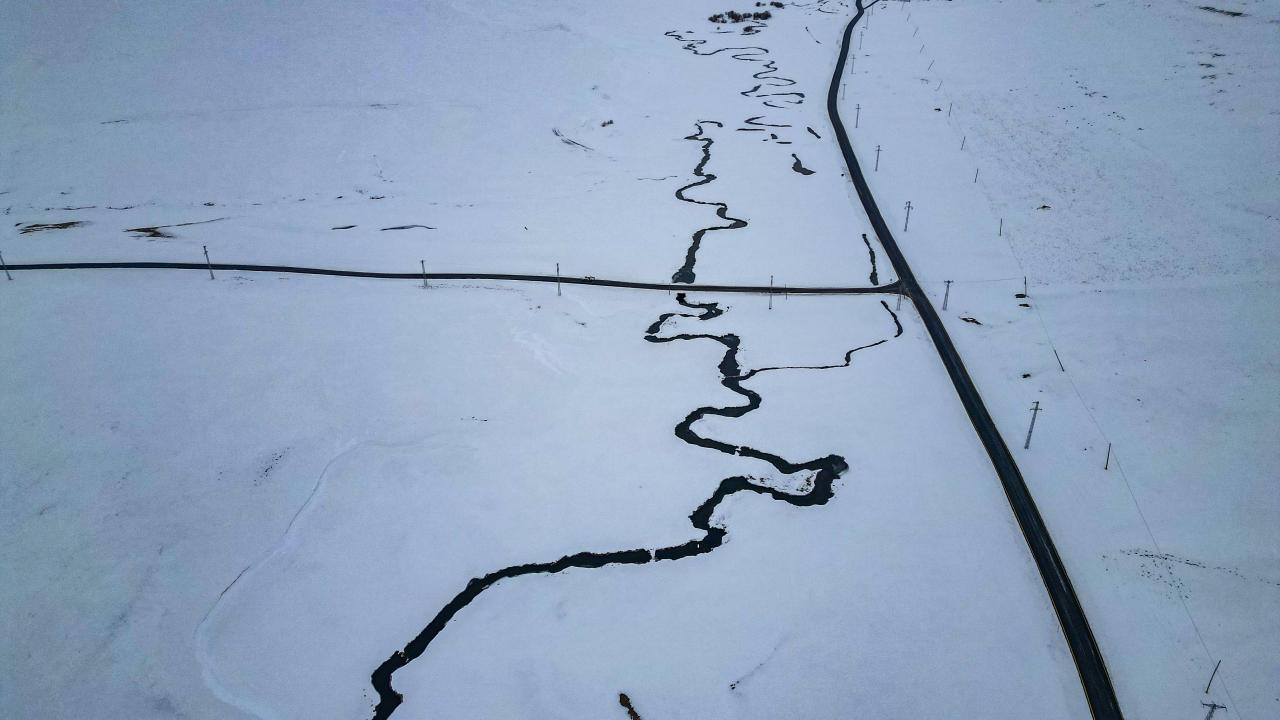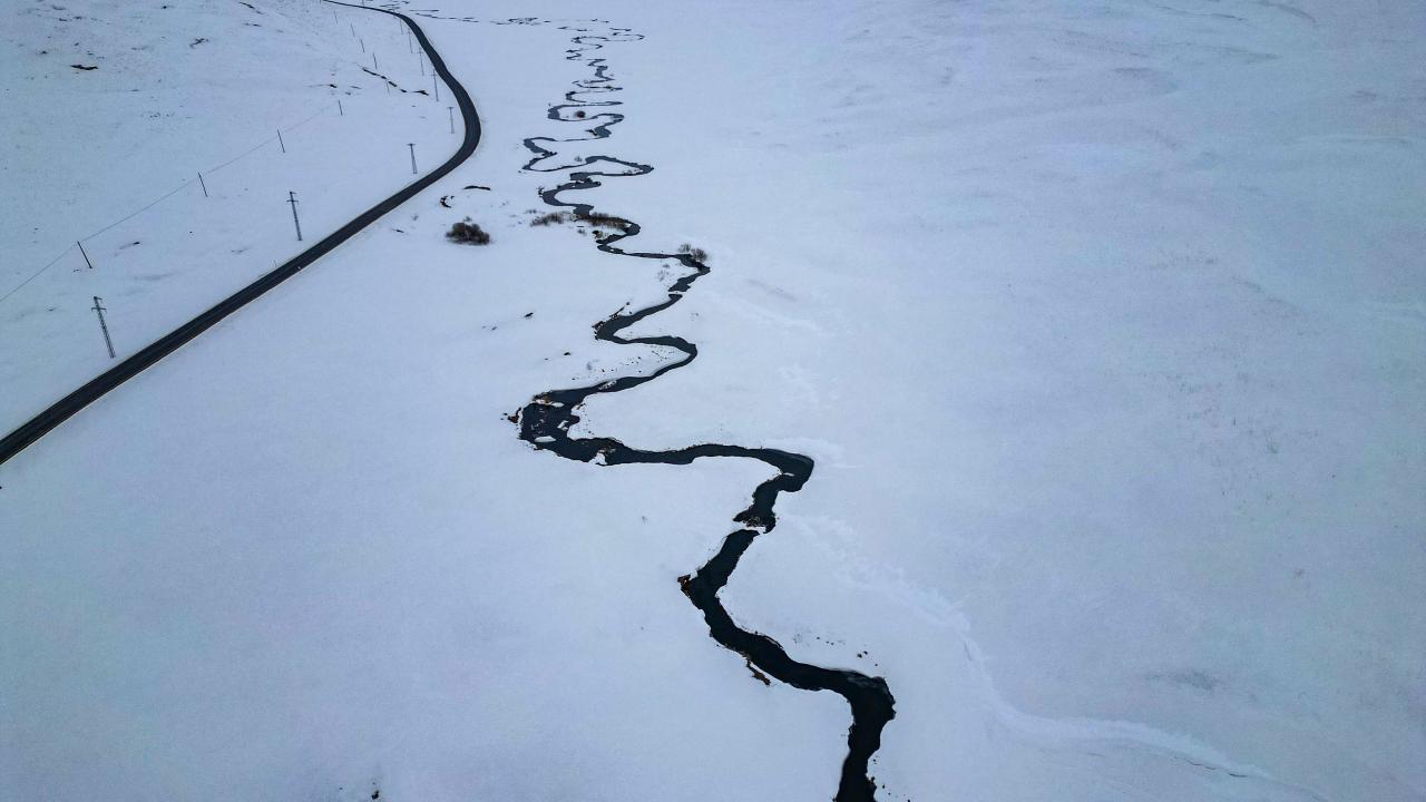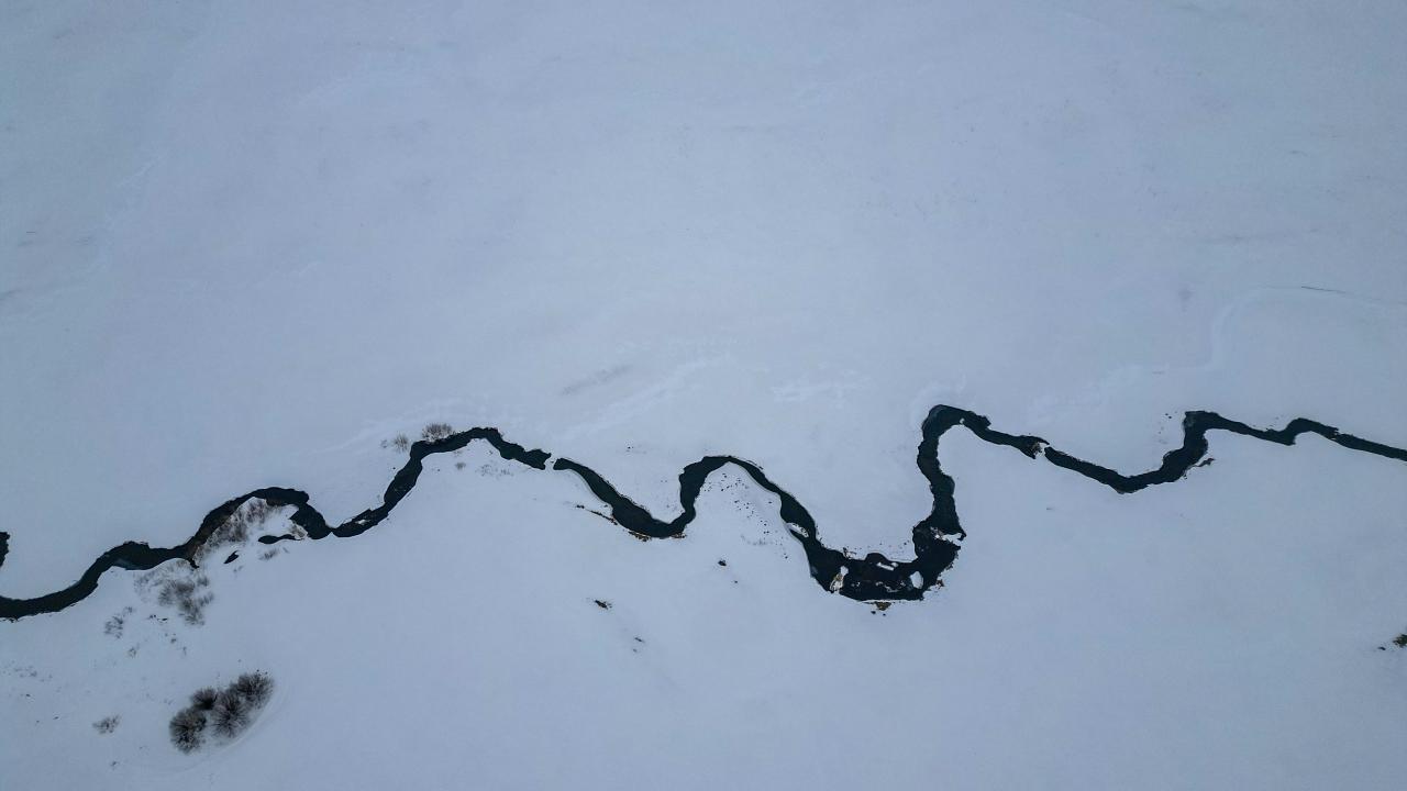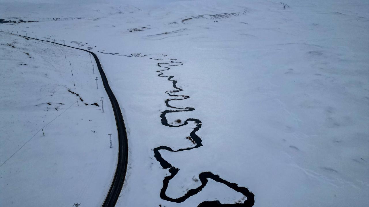 Erzurum'un Karayazı ilçesinde karla kaplanan menderesler havadan görüntülendi.