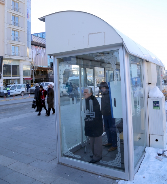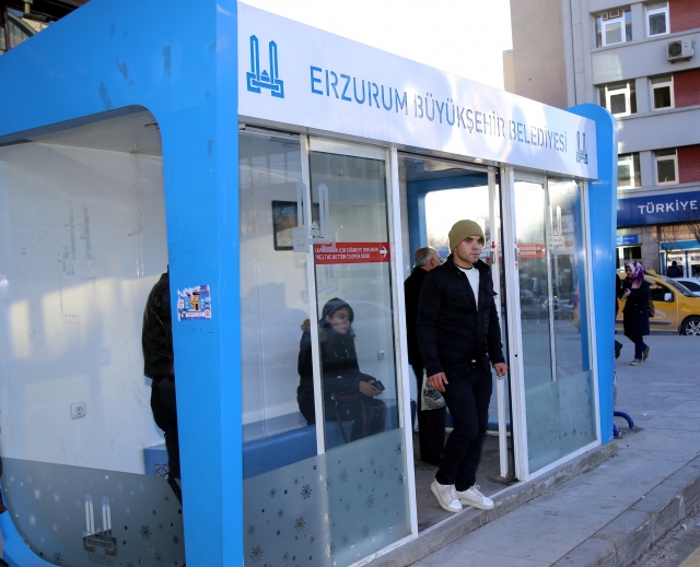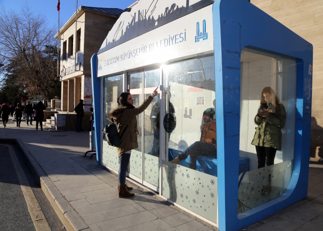 Türkiye'de yüksek rakımı ve sert iklim koşulları nedeniyle hava sıcaklığının kış aylarında sıfırın altında 40 dereceyi bulduğu Erzurum'da, toplu taşıma araçlarını kullanan vatandaşlar, soğuk havadan "klimalı duraklar" sayesinde korunuyor.