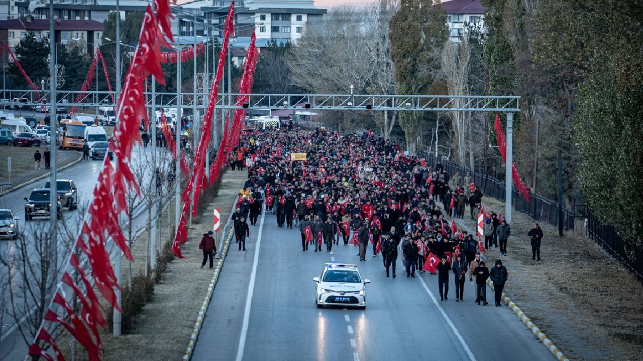 Çocukların ve yaşlıların da aralarında bulunduğu Erzurumlular, daha sonra sabahın erken saatlerinde soğuk havaya rağmen ellerindeki Türk bayraklarıyla Aziziye Tabyalarına kadar yürüdü.