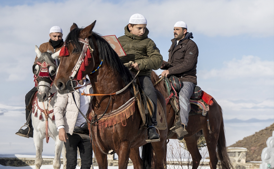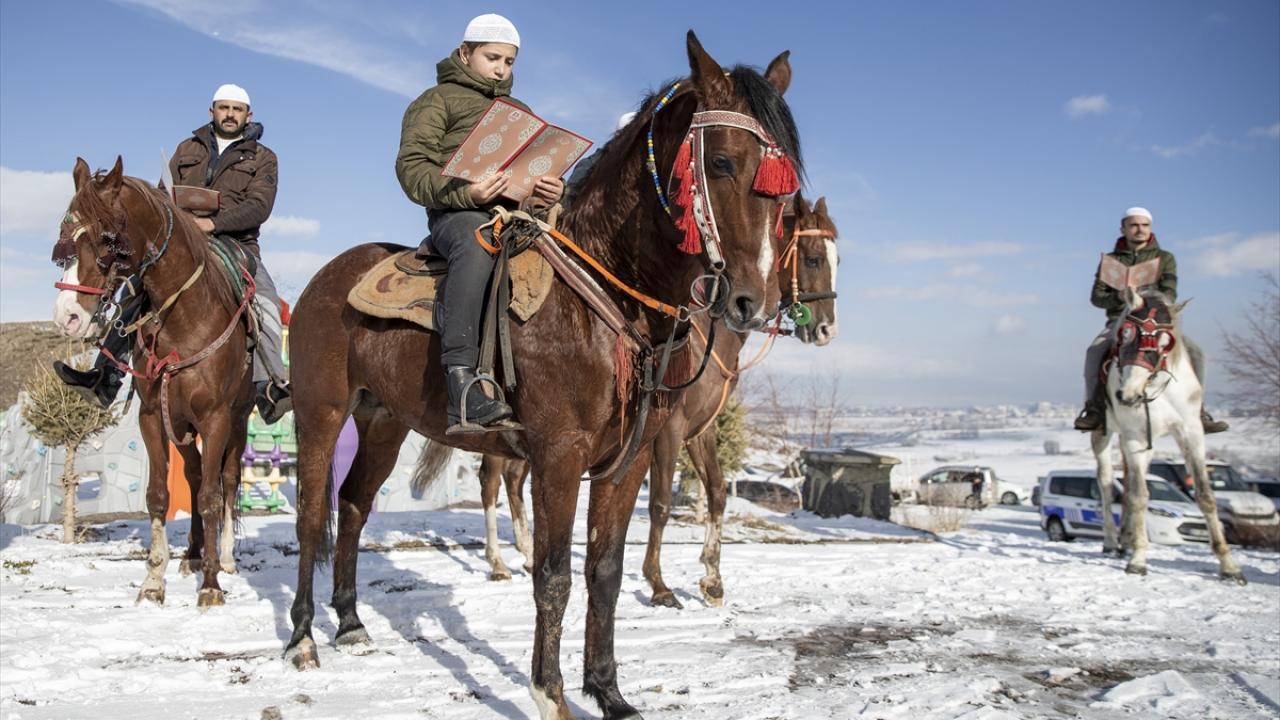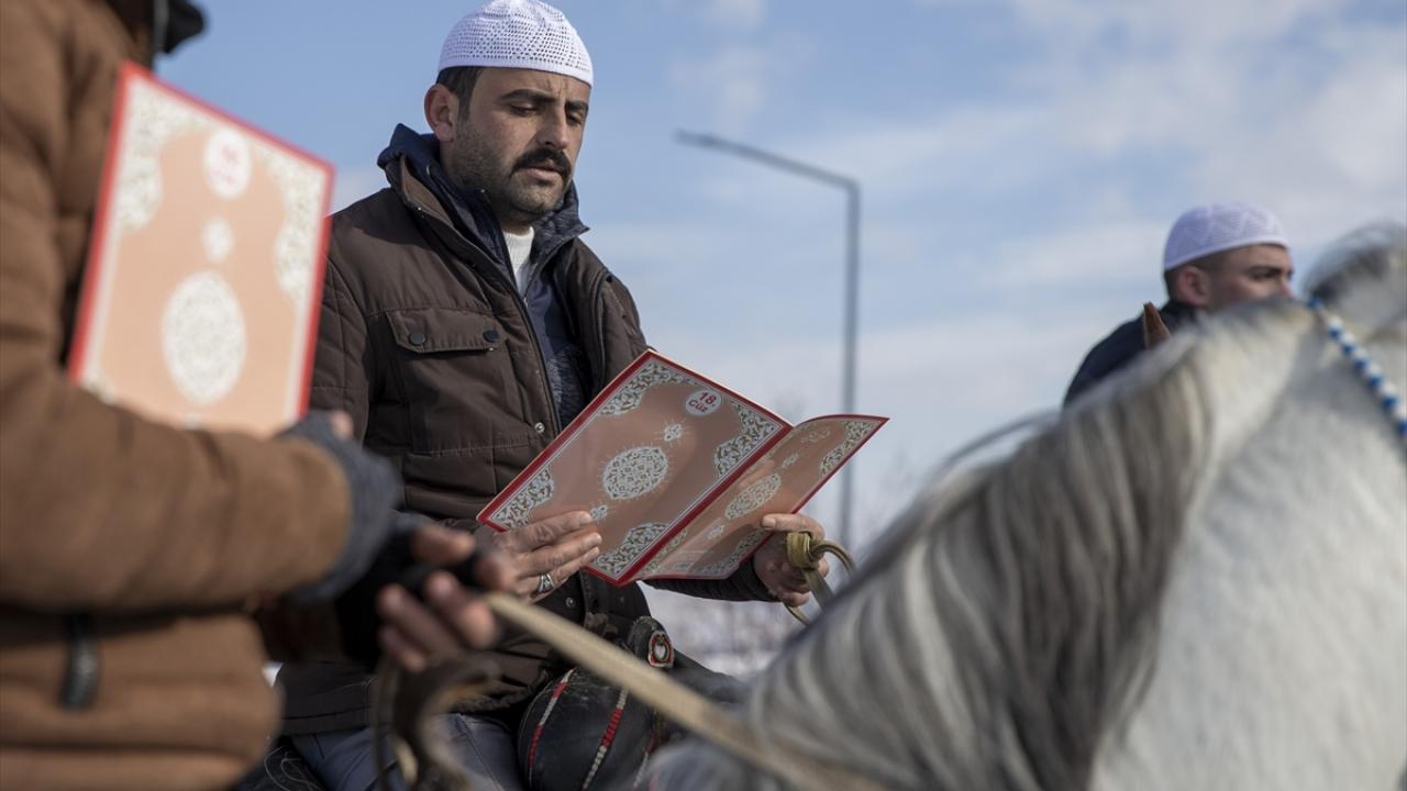 Pir Ali Baba Türbesi önünde düzenlenen programda, İl Müftüsü Şahin Yıldırım`ın dua etmesinin ardından atlara binen hafızlar türbe etrafında Kur`an okuyarak hatim geleneğini başlattı.