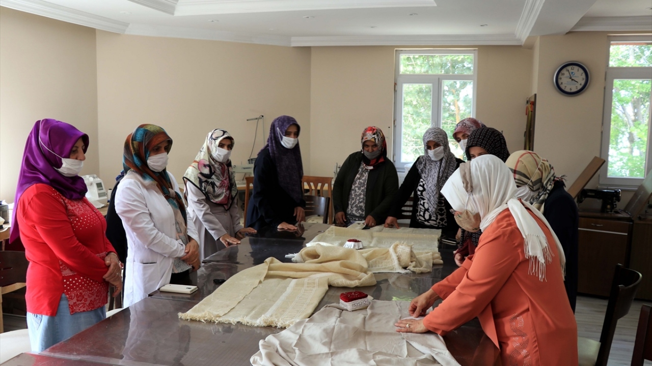 Ata yadigarı olarak bilinen kumaştan, emekli el sanatları öğretmeni ve Aktif İş Kadınları Dostluk ve Dayanışma Derneği (ERAKDAY) Başkanı Hülya Saltuklu`nun öncülüğünde, Türkiye İş Kurumu aracılığıyla açılan kursta bir araya gelen 14 kursiyer tarafından maske üretilmeye başlandı.