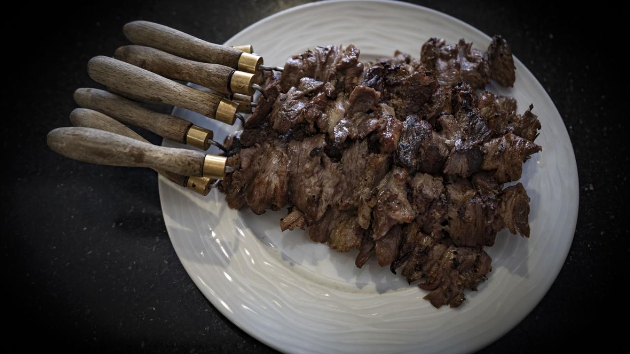 Pişirilmeden önce soğan, karabiber ve tuzla terbiye edilen et, dinlendirme aşamasının ardından parçalar halinde "cağ" adı verilen şişlere takılıyor.