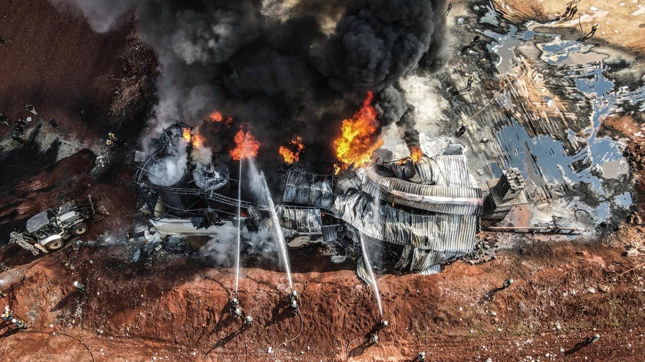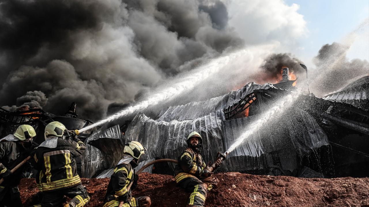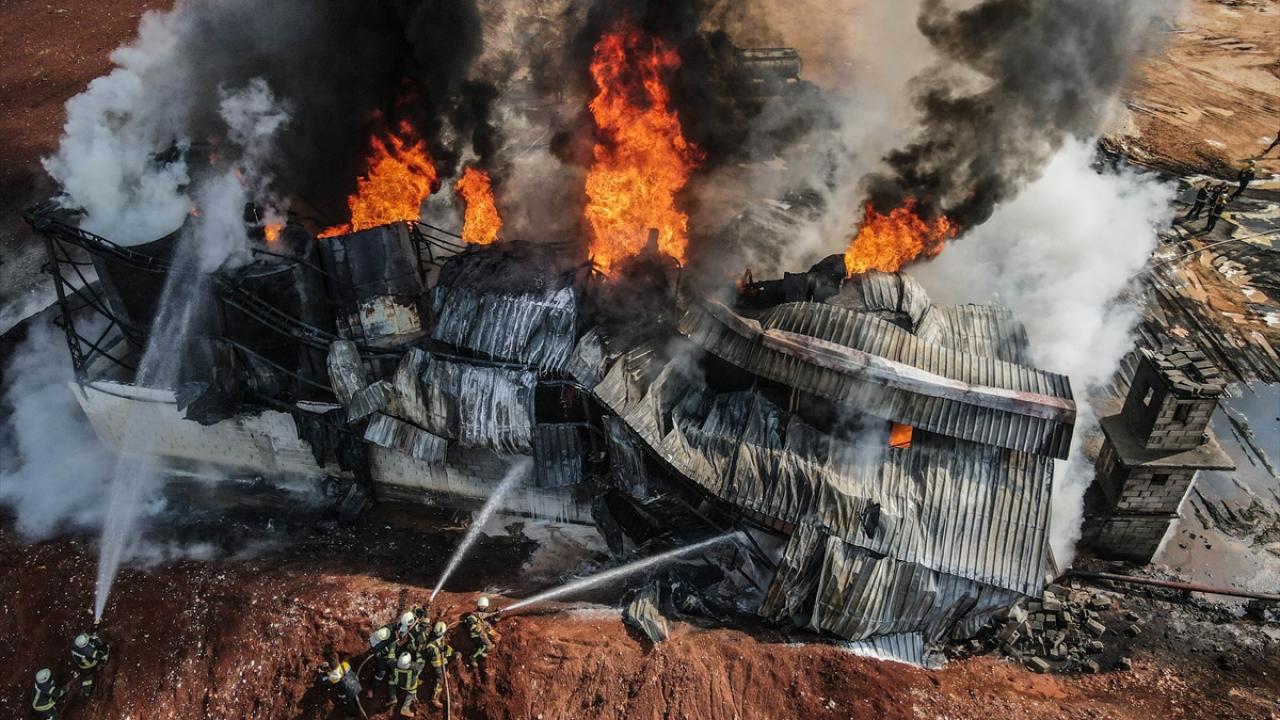 Olay yerine gelen itfaiye ekipleri, patlama sonucu çıkan yangını söndürmeye çalıştı.