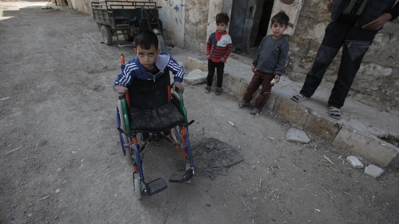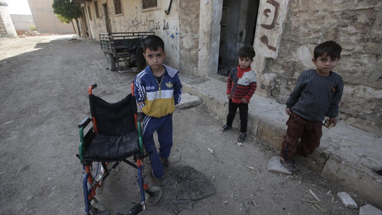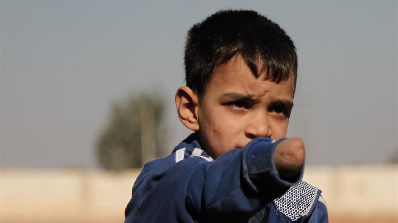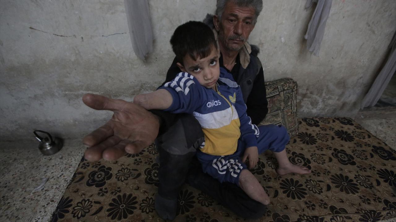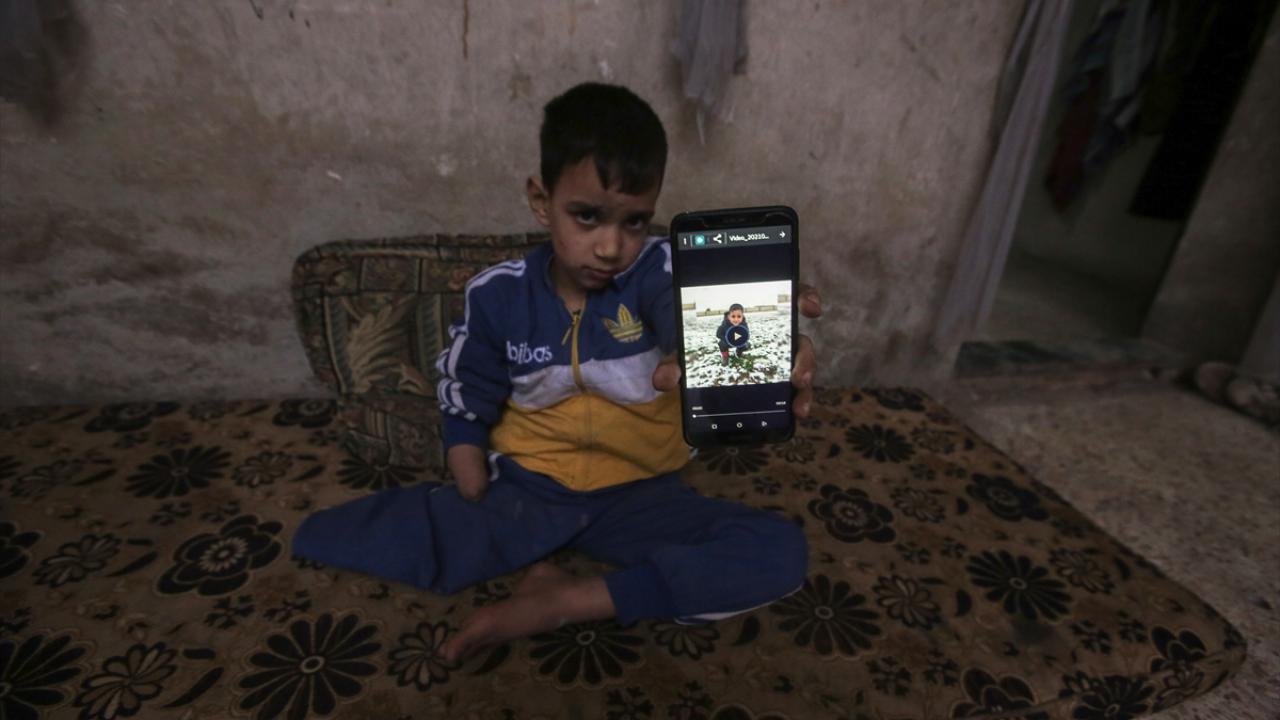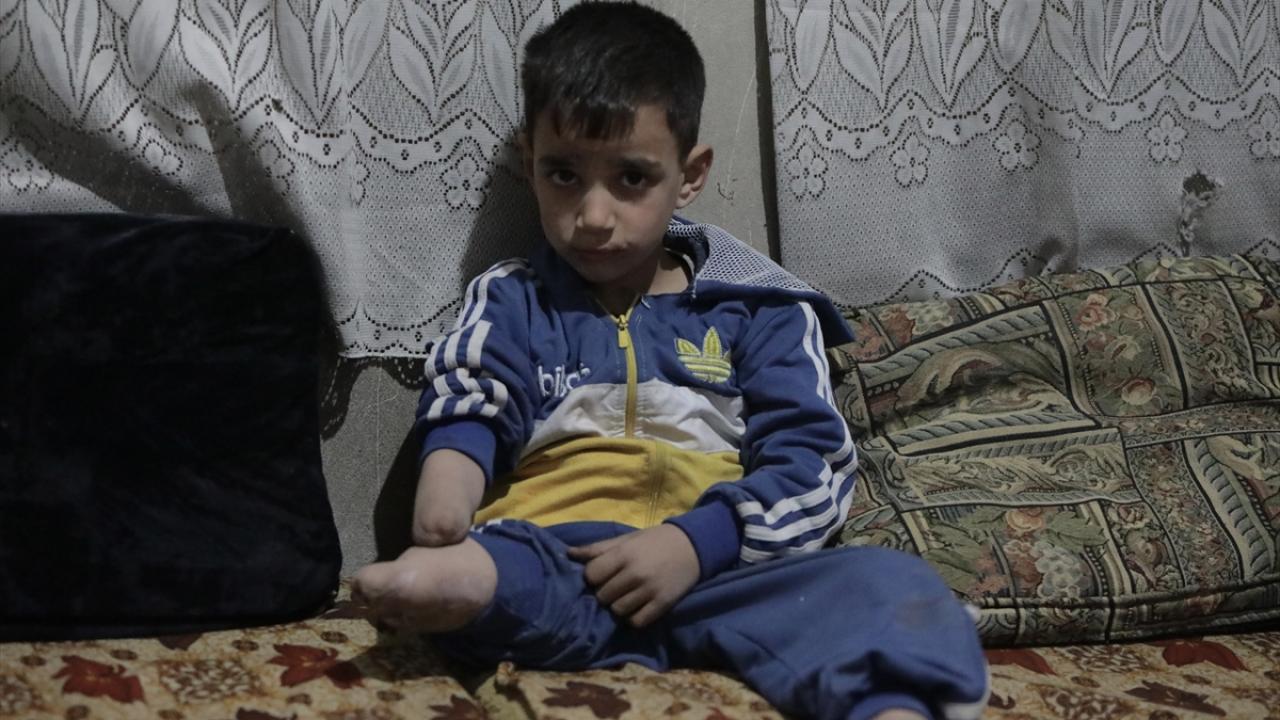 Ailenin küçük çocuğu Abdo bir yıl önce rejim güçlerinin beldeye havan topu saldırısında yaralandı.