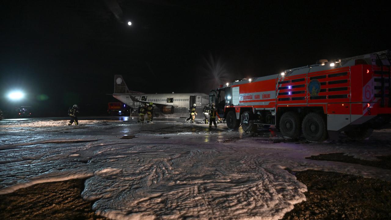 10 bin litre yakıt, 150 yolcu, 8 mürettebat, 3 engelli yolcu ve arsenik içeren kimyasal madde kargosunun bulunduğu uçak, piste iniş yaptığı sırada motor ve iniş takımı bölgesinde yangın başladı.