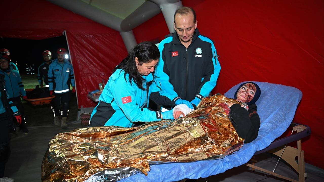 Tatbikatta, temsili ölü ve yaralılara müdahale eden sağlık ekiplerinin müdahale süresi ve davranışlarında sergiledikleri başarı ile senaryo gereği ölü ve yaralı yakınlarının performansları dikkati çekti.