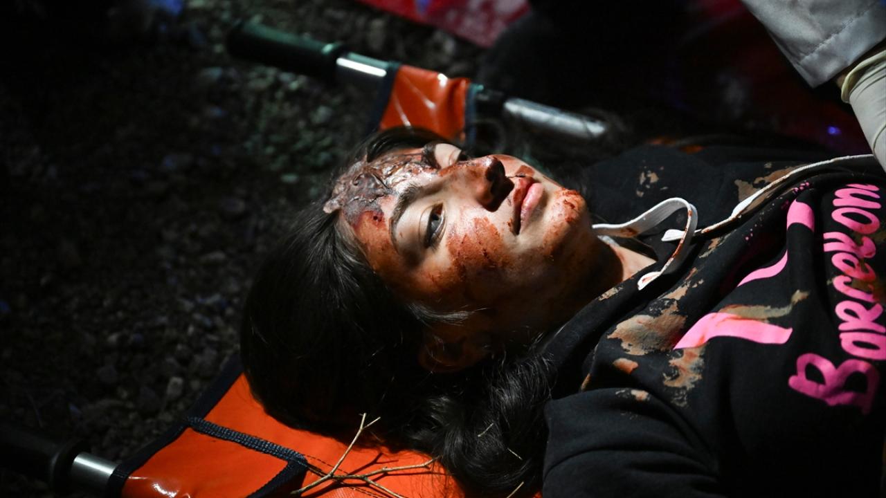 Makyajla gerçeğe yakın ölü ve yaralı görünümüne kavuşturulan kişilere müdahale eden ekipler tatbikatı başarıyla tamamladı.