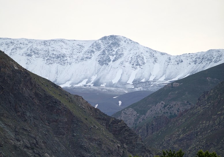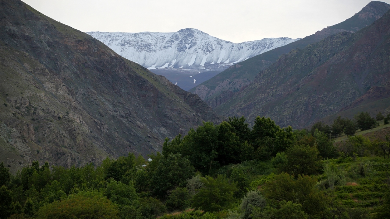 Üzümlü ilçesinde bulunan 3 bin 549 metre yüksekliğindeki Esence Dağı`nın haziran ayında beyaza bürünmesi görenleri şaşırttı.