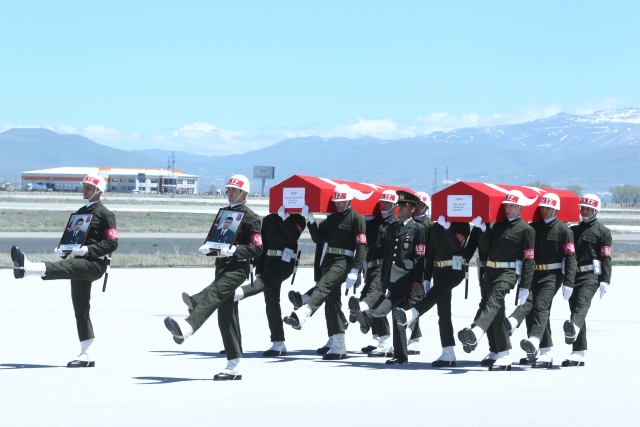 Ağrı'nın Doğubayazıt ilçesindeki Tendürek Dağı'nda çıkan çatışmada şehit düşen Jandarma Uzman Onbaşı Alper Seven ve Jandarma Uzman Çavuş Mehmet Gücüyetmez'in cenazeleri, törenle memleketlerine uğurlandı.Törene eşinin komando beresini takarak katılan şehit Gücüyetmez'in eşi, hayat arkadaşına gözyaşları içinde asker selamıyla veda etti.