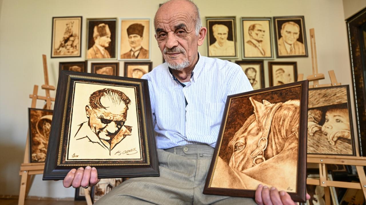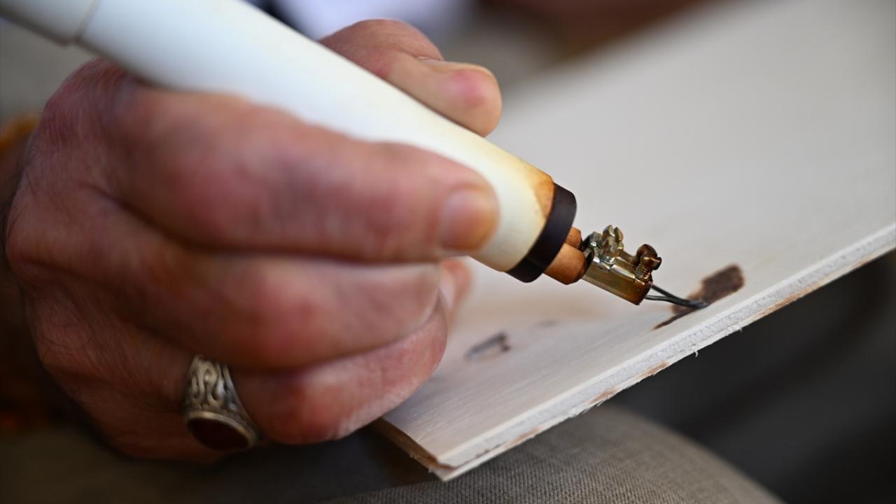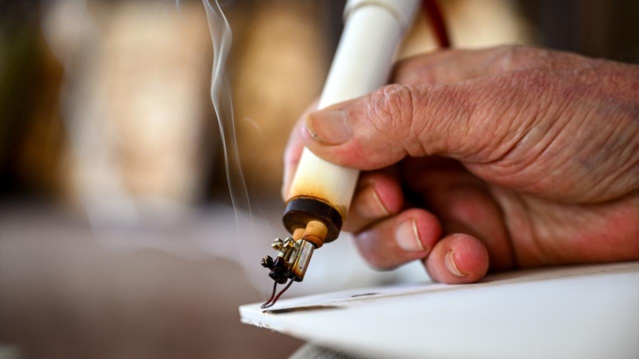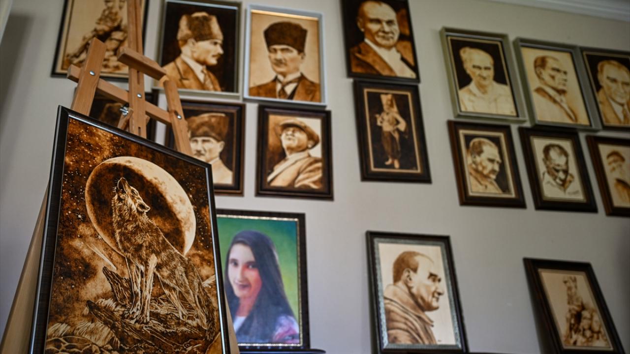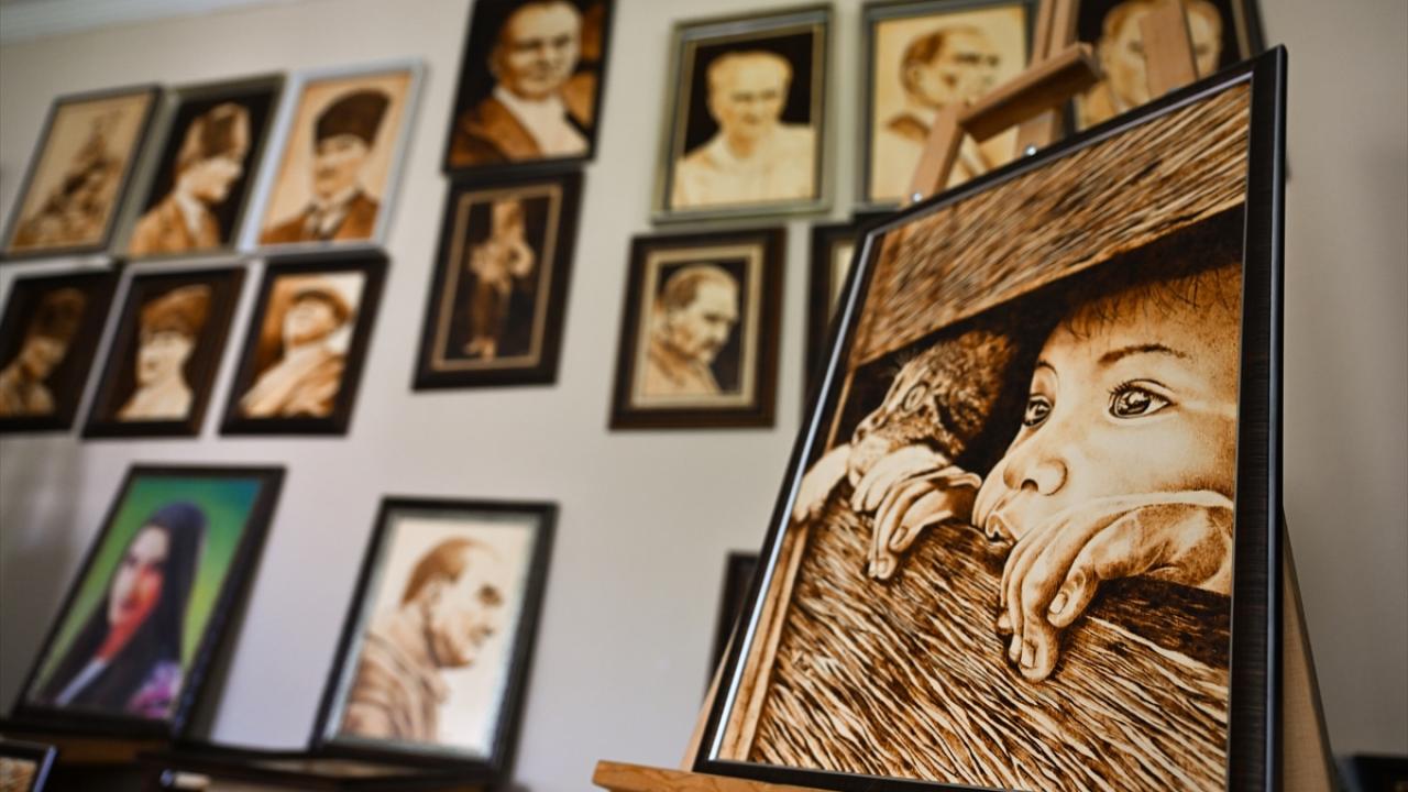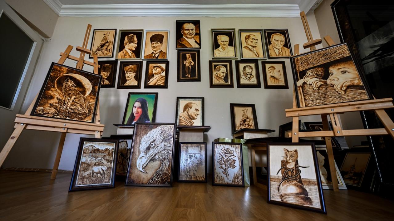 Yağlı boya tekniğiyle bir süre çalıştığını aktaran Akar, daha sonra ahşap yakma sanatına yöneldiğini ifade etti.