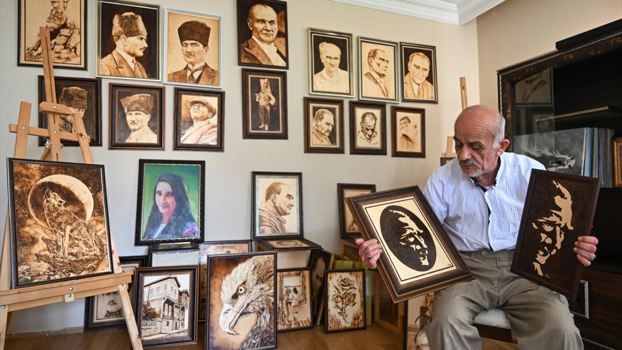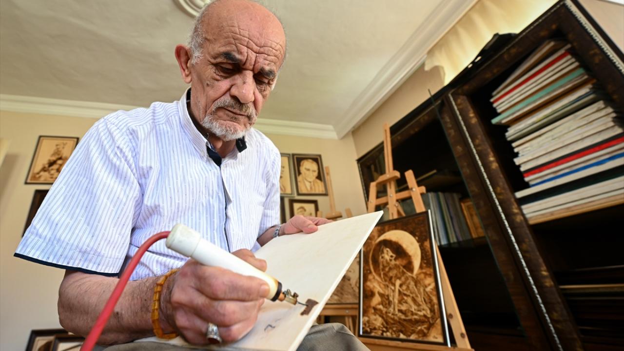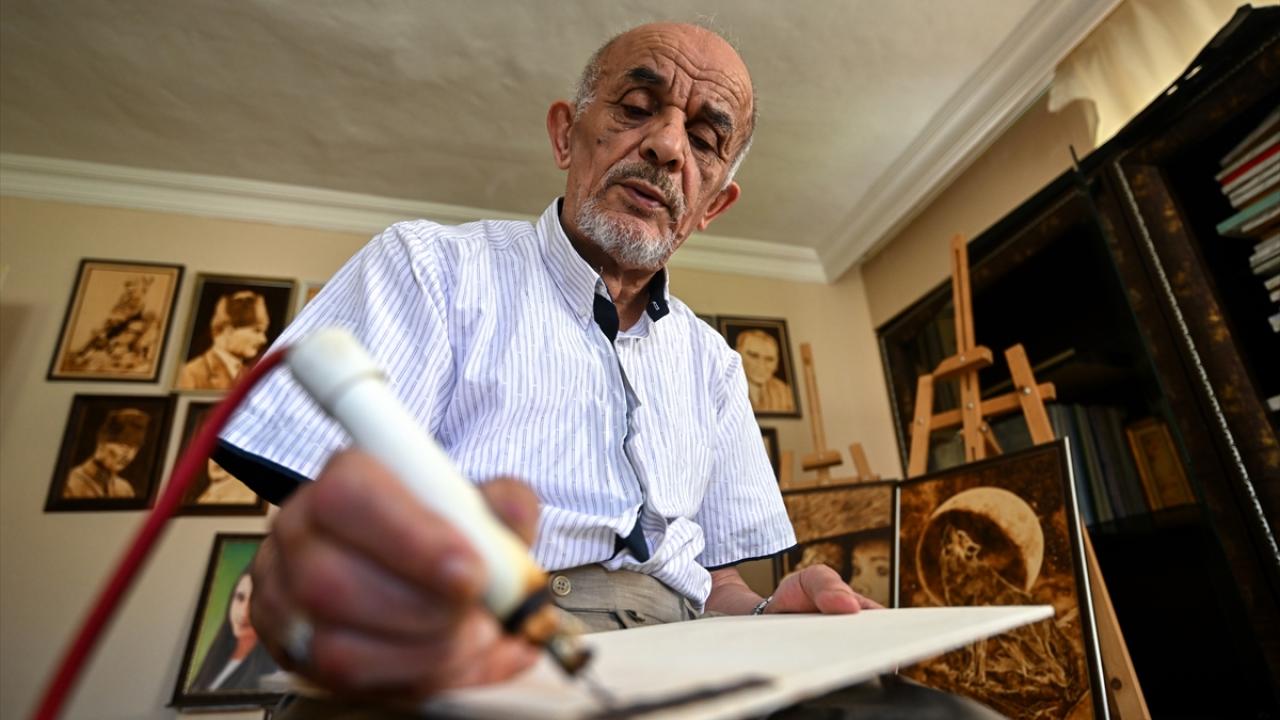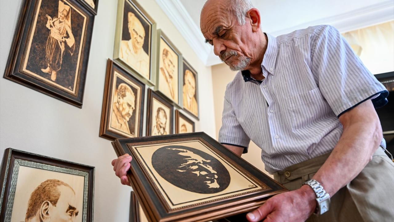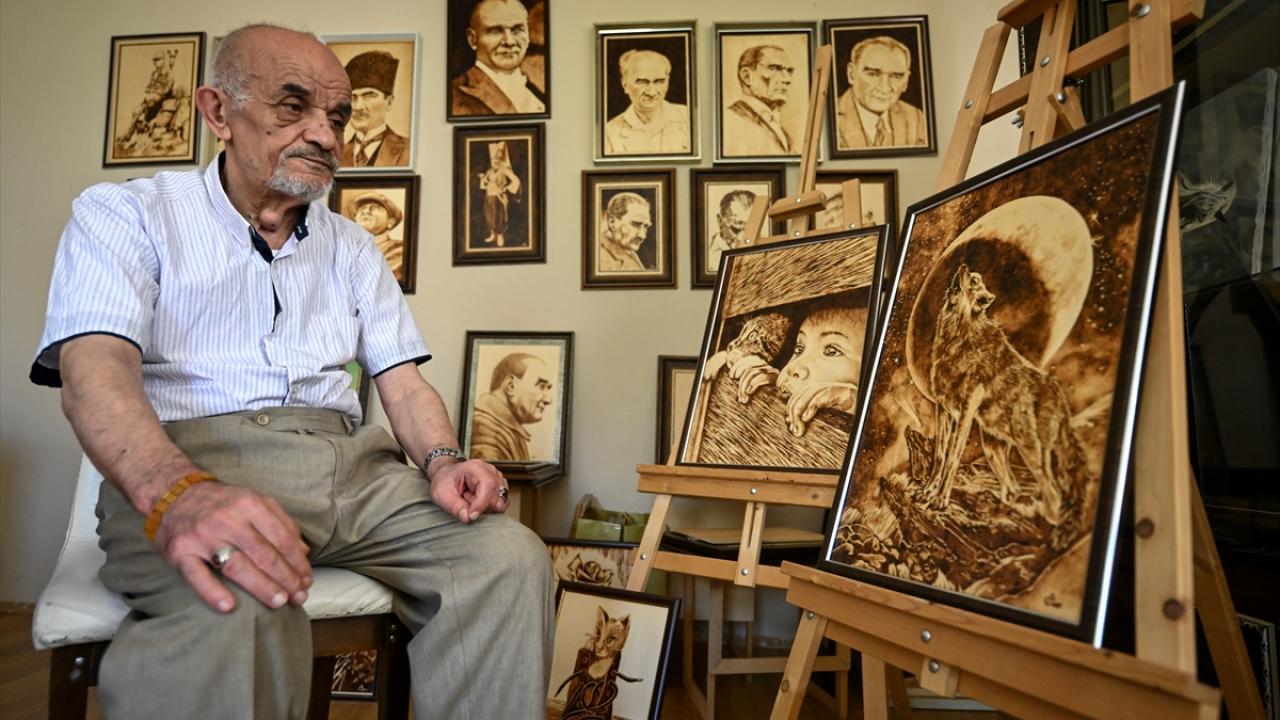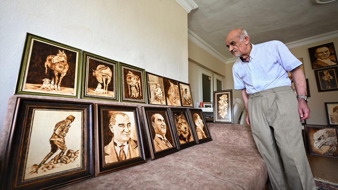 Yağlı boya tekniğiyle bir süre çalıştığını aktaran Akar, daha sonra ahşap yakma sanatına yöneldiğini ifade etti.