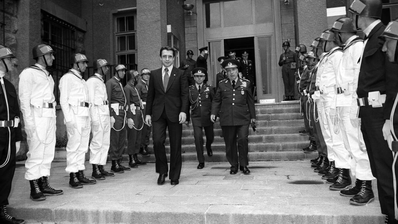 Dönemin İçişleri Bakanı Hasan Fehmi Güneş, 10 Nisan 1979`da Polis Teşkilatı`nın kuruluş yıl dönümünde konuşma yapmıştı. (Arşiv)
