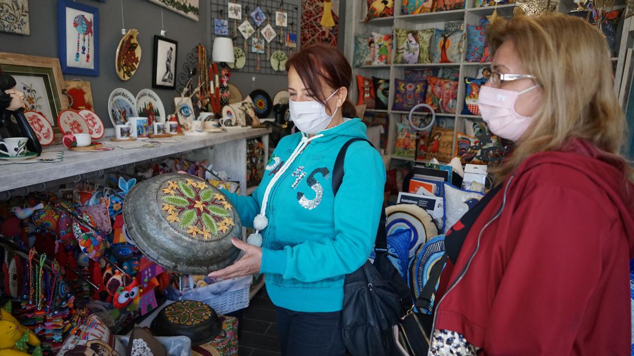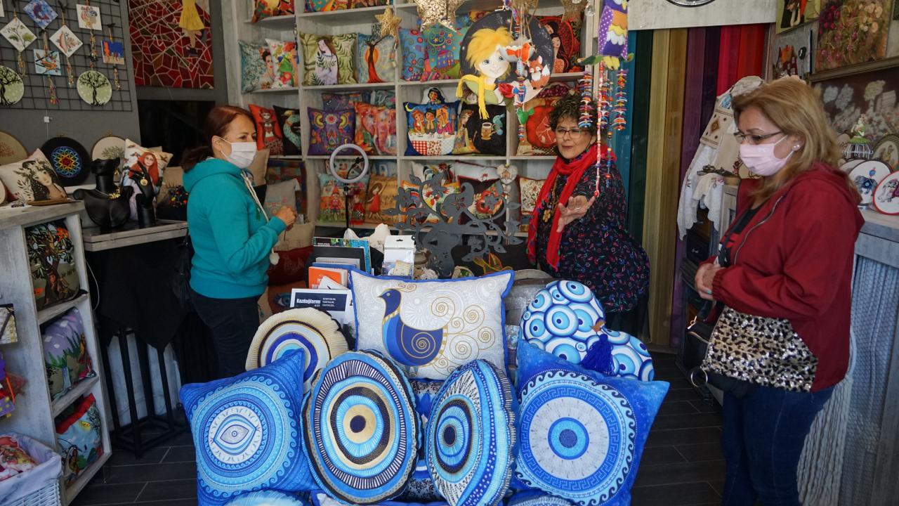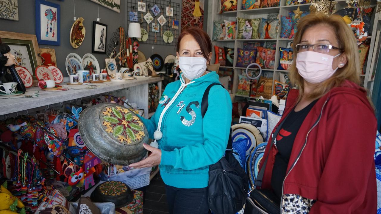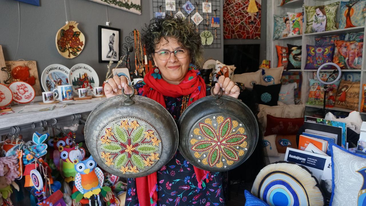 İstanbul'da uzun yıllar dış ticaret firmalarında yöneticilik yaptıktan sonra Balıkesir'in Edremit ilçesine yerleşen Ayşın Aksu'nun, atölyesinde yaptığı el sanatı ürünleri ilgi görüyor.