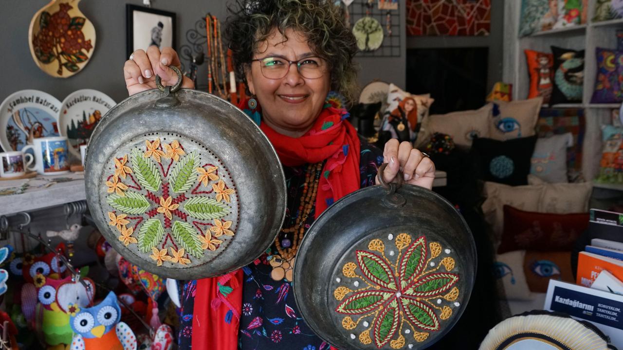 Eski bakır süzgeçleri motiflerle işleyip sanat eserine dönüştürüyor