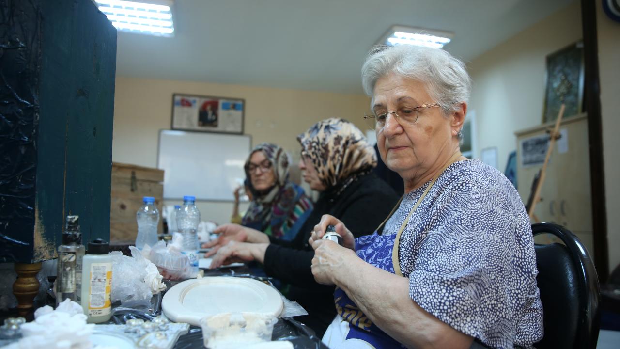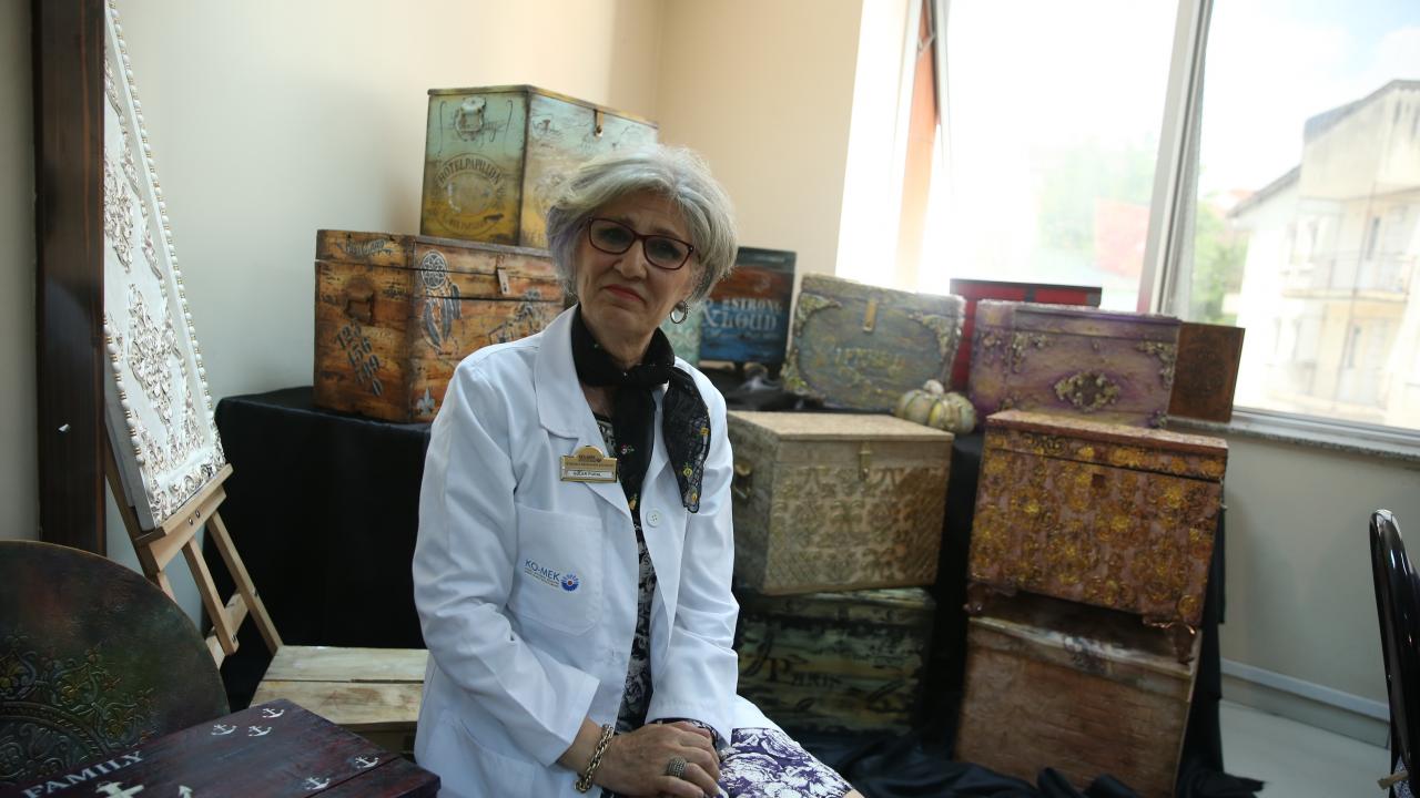 Kocaeli'de aralarında geçmişte kullanılan ahşap oy sandıklarının da olduğu eski eşyalar, kadınların elinden yeniden hayat buluyor.