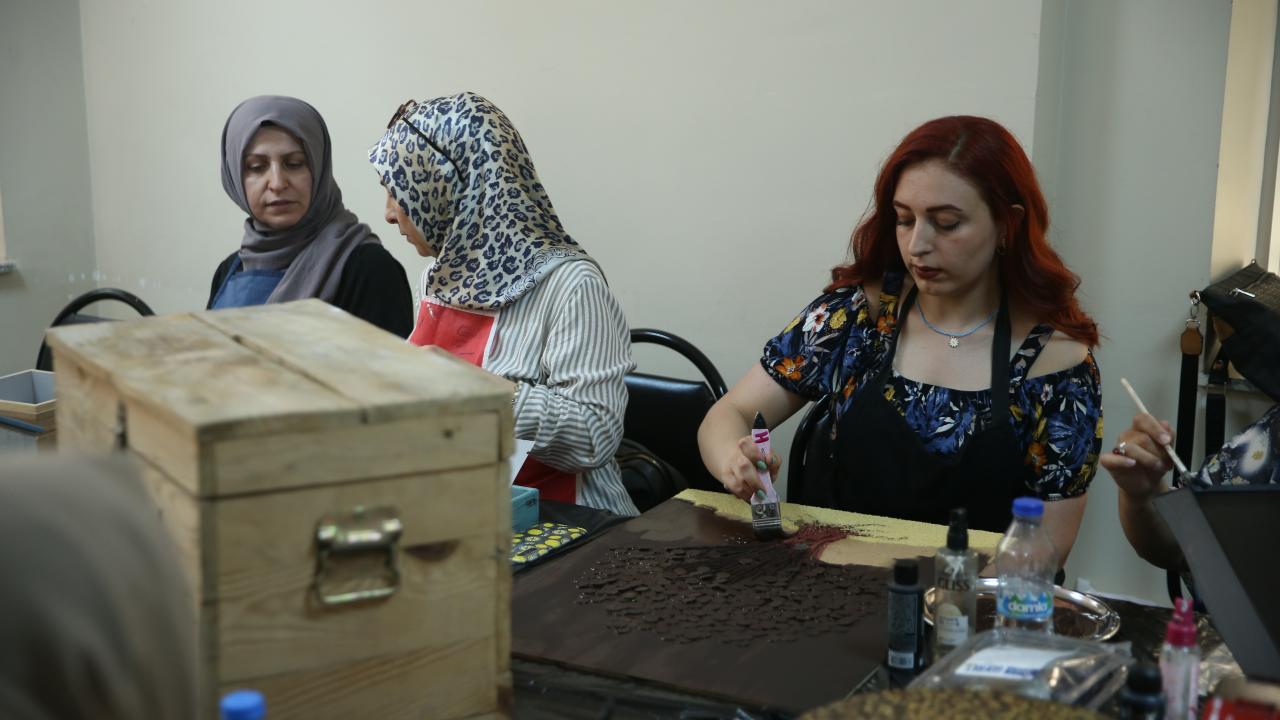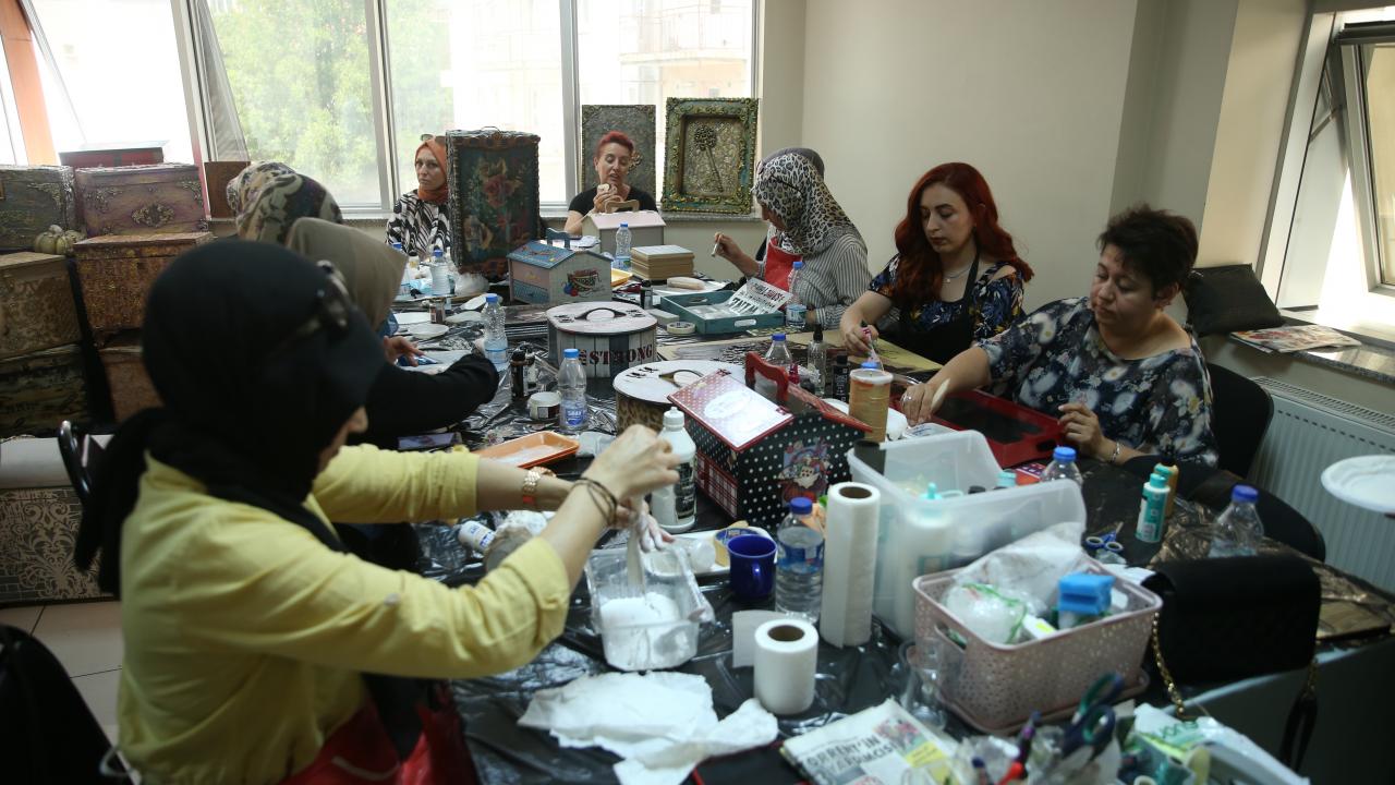 Geçmişte kullanılan ahşap oy sandıkları, eski sehpa, tepsi gibi eşyaları değerlendiren kadınlar, onlara yeni kullanım alanları açıyor.