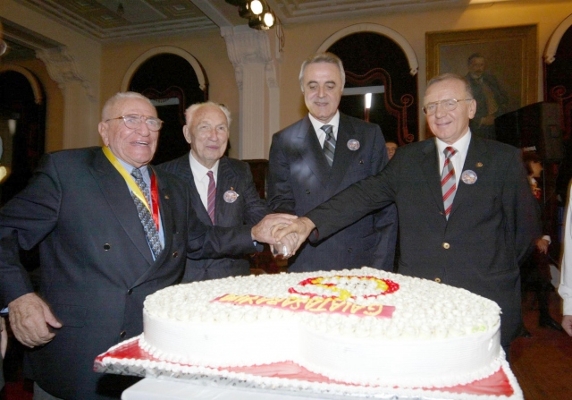 Eski Galatasaray Kulübü Başkanı Prof. Dr. Ali Tanrıyar, 103 yaşında tedavi gördüğü hastanede vefat etti. 15 Ekim 2005`de Tanrıyar (sol 2), Galatasaray Kulüp Başkanı Özhan Canaydın (sağ 2) ile birlikte Galatasaray 100. yıl pastasını keserken görülüyor.