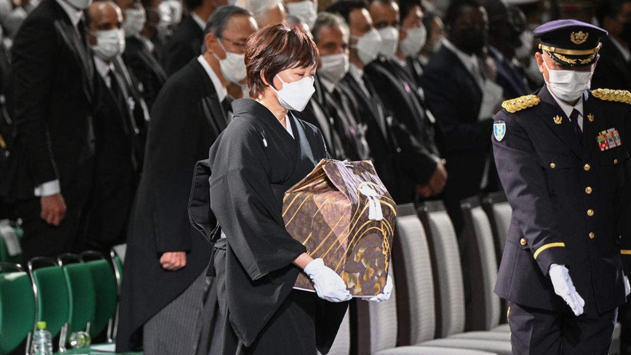 Şinzo`nun eşi Abe Akie de törene katıldı.