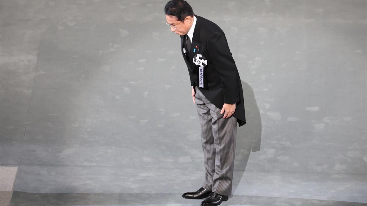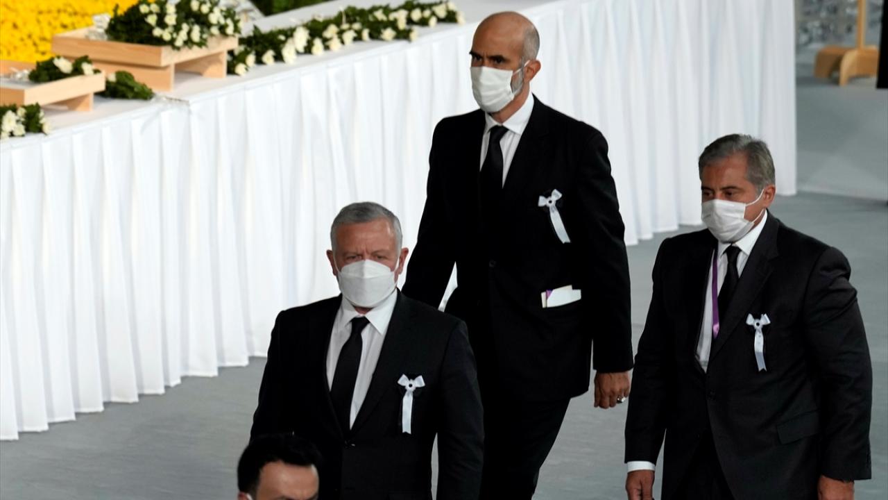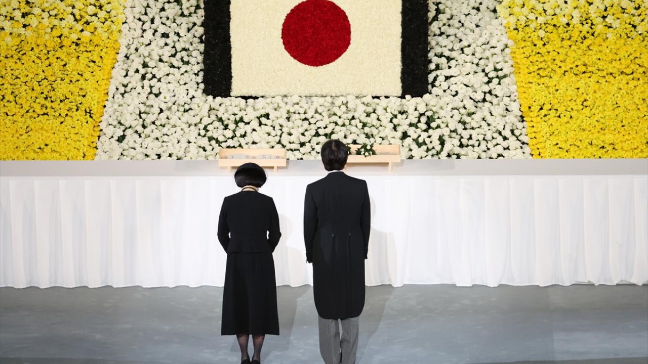 Japonya Başbakanı Kişida Fumio törendeki konuşmasında, Japon halkına taziyelerini sundu ve Abe`nin sahnede asılı fotoğrafının altına yürüyerek saygıyla eğildi.