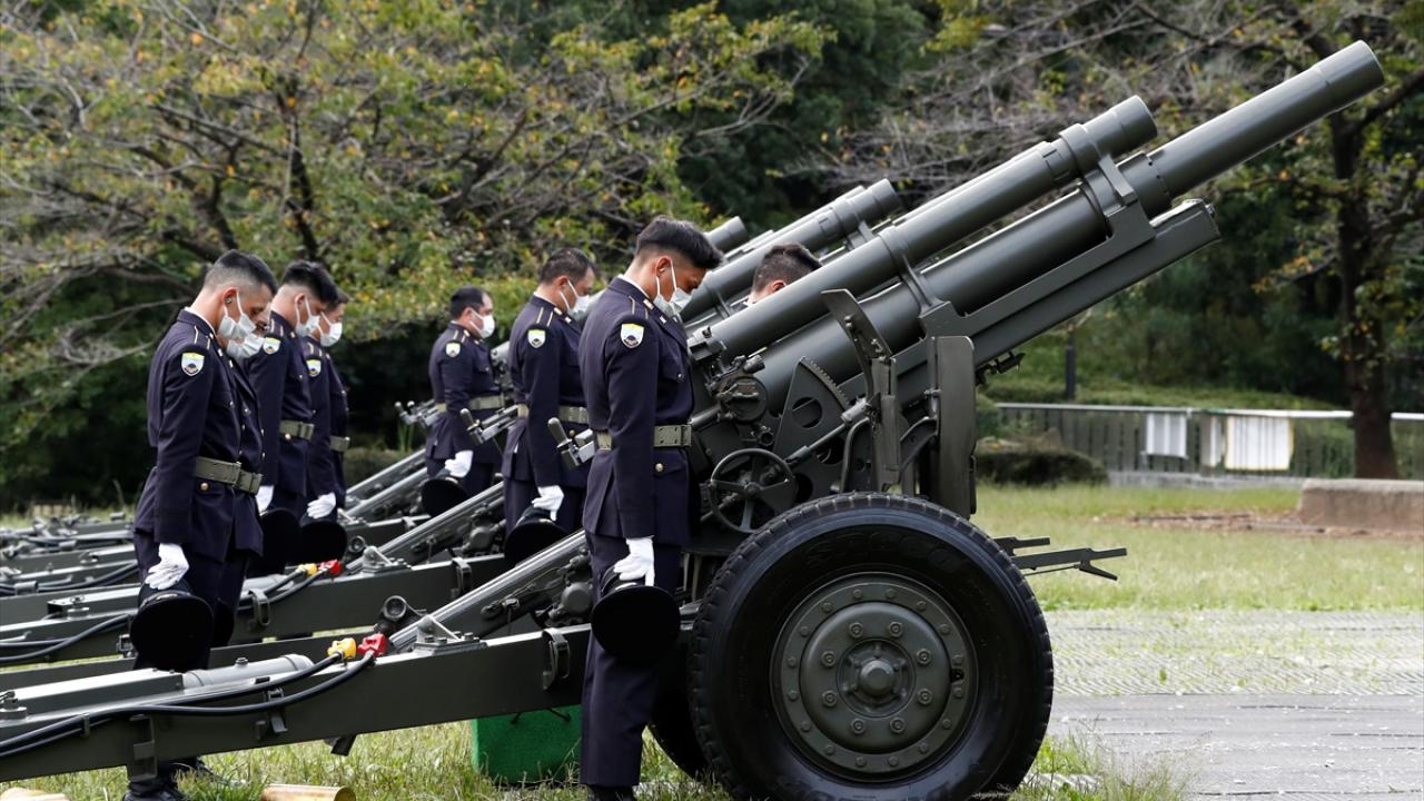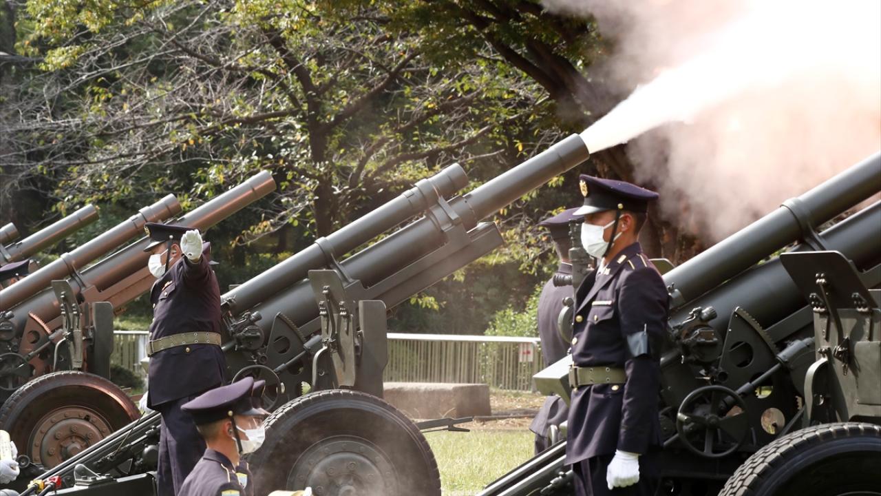 Japon Kara Öz Savunma Kuvvetleri, devlet cenaze töreni için Budokan arazisinde top atışında bulundu.