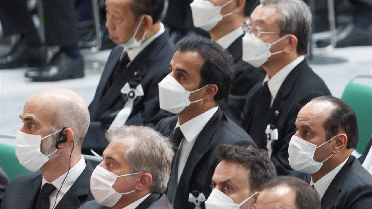 Törende, Şinzo`nun eşi Abe Akie (arka sağda) ve Japonya Başbakanı Kişida Fumio (solda) da yer aldı.