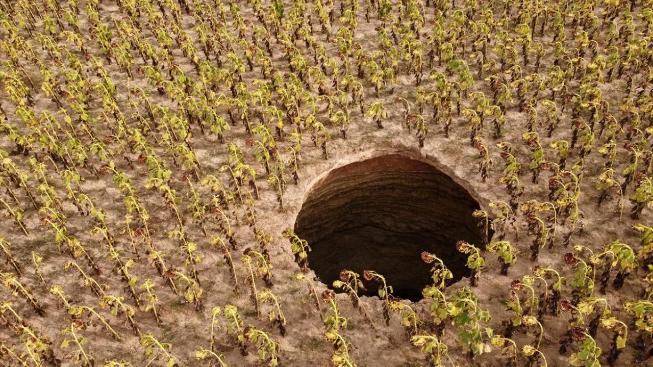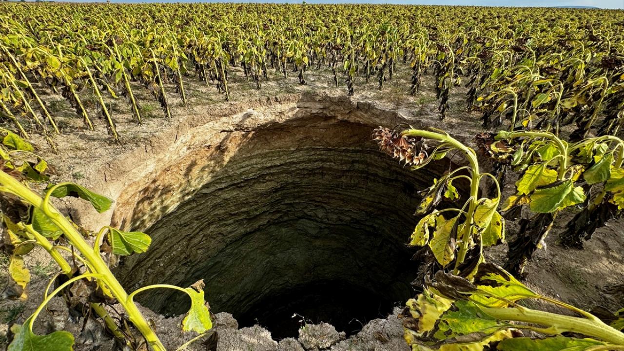 İlçeye bağlı kırsal Sadıroğlu Mahallesi`nde yaşayan Erkan Ceylan, kendisine ait ayçiçeği tarlasında obruk oluştuğunu fark etti.