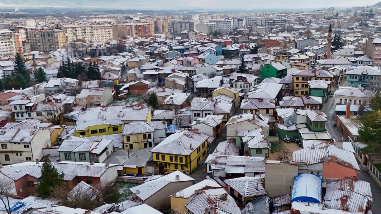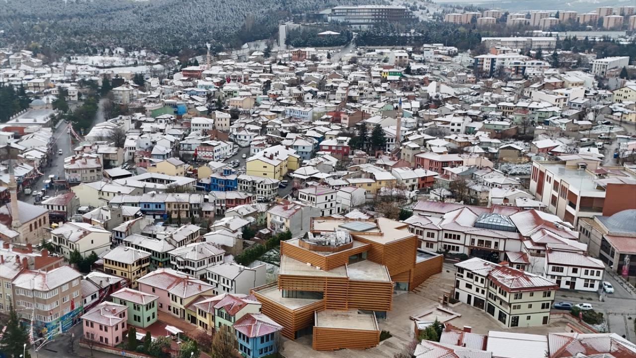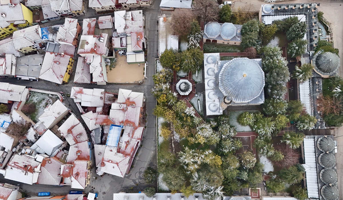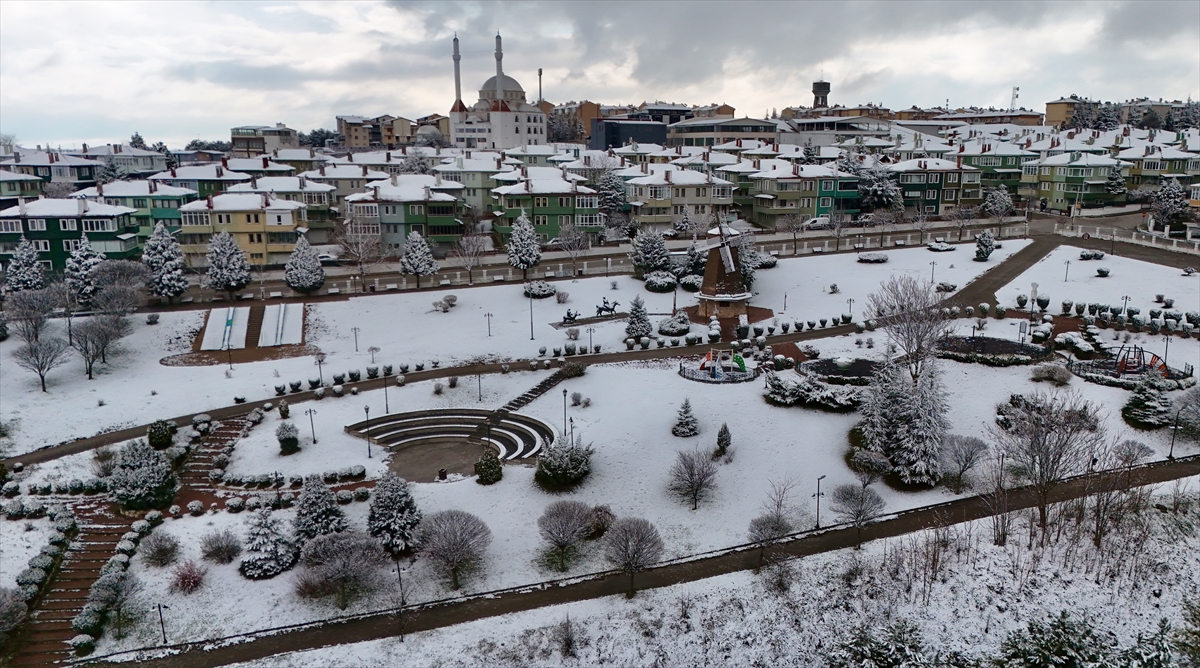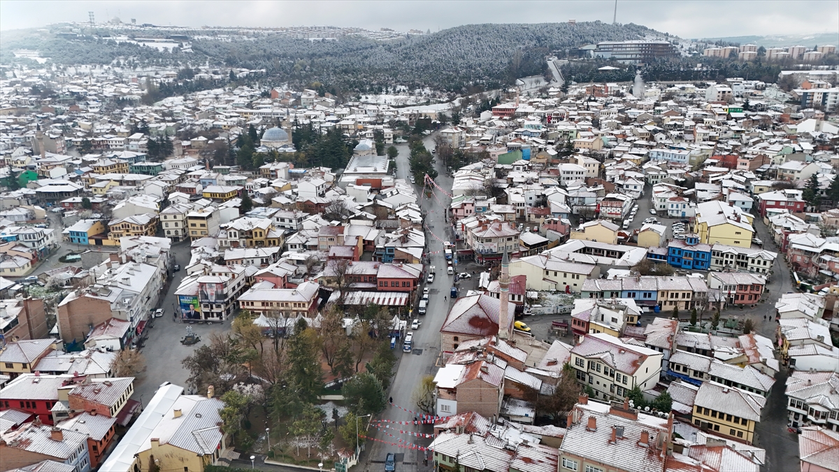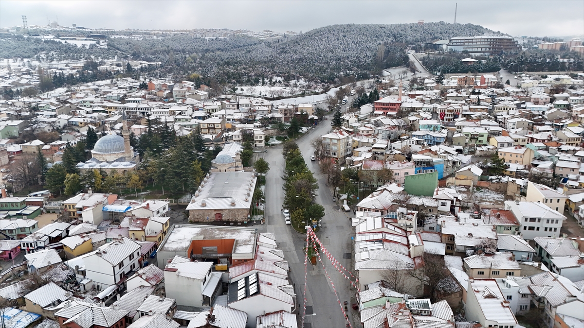 Kent merkezinin karla kaplı manzaraları dron ile görüntülendi.