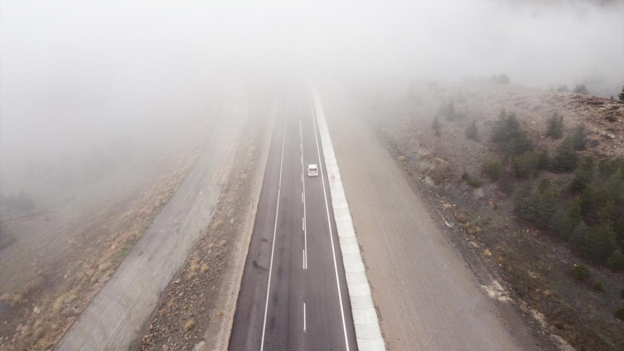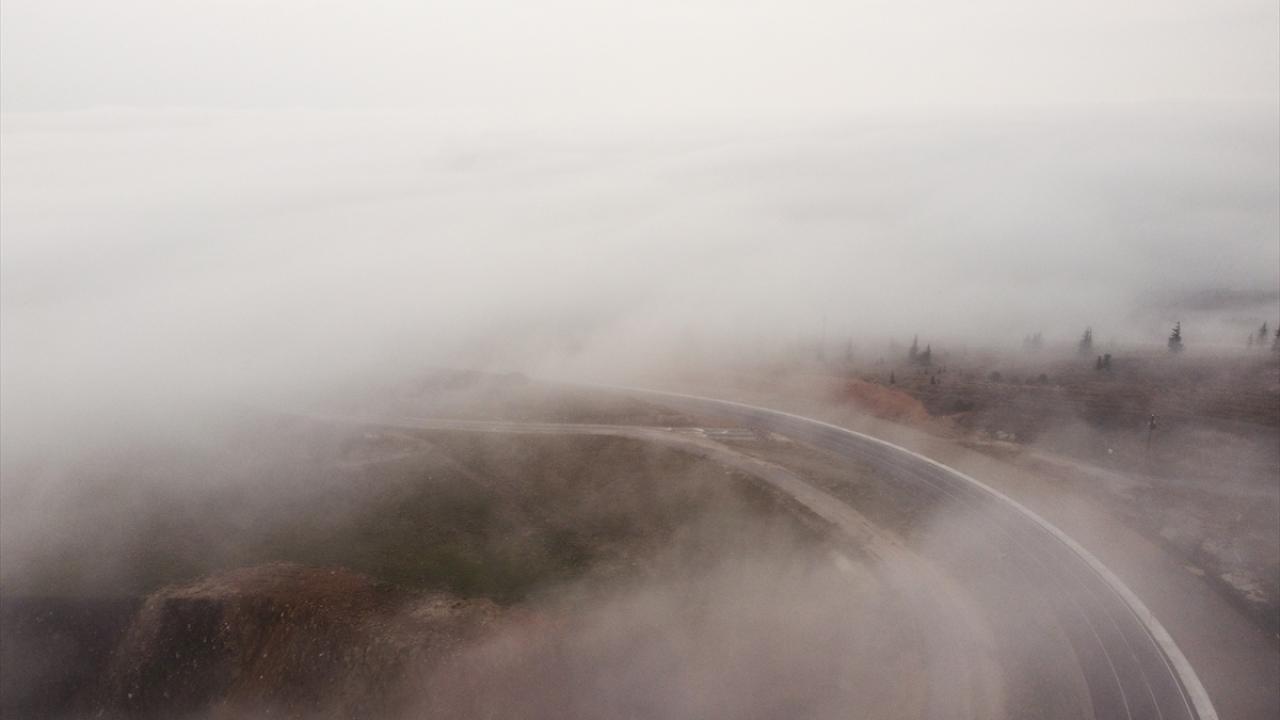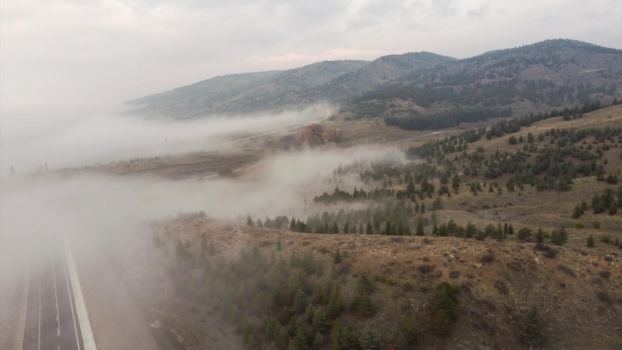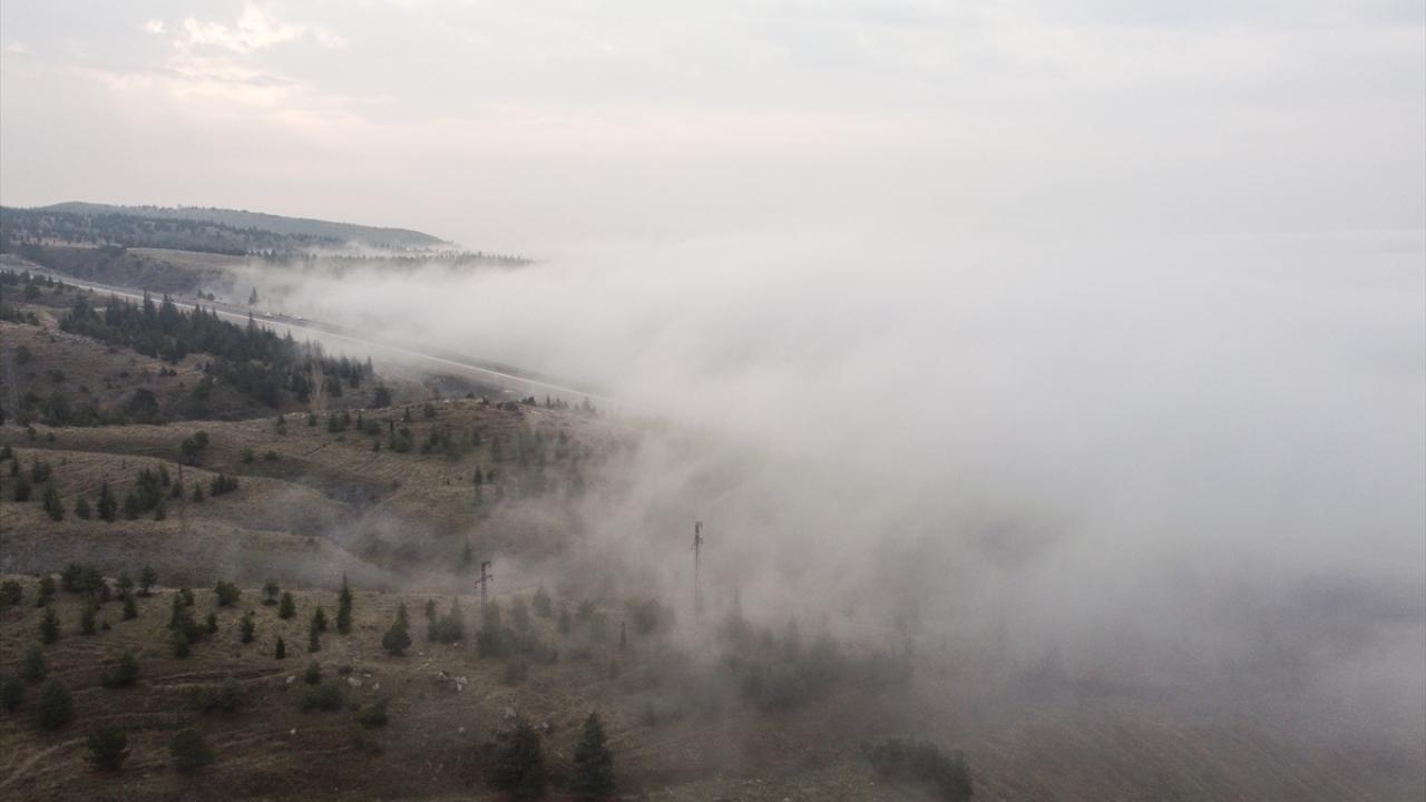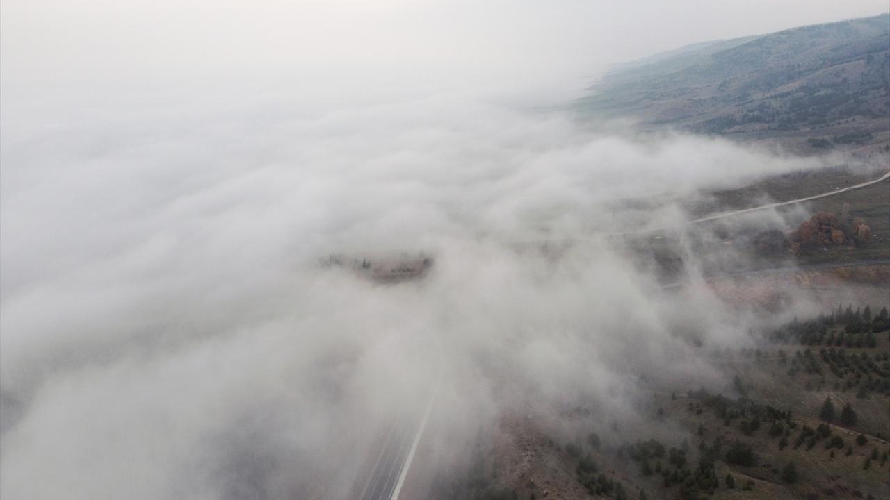 Eskişehir-Sarıcakaya kara yolu Bozdağ mevkisinde sis tabakası dronla görüntülendi.