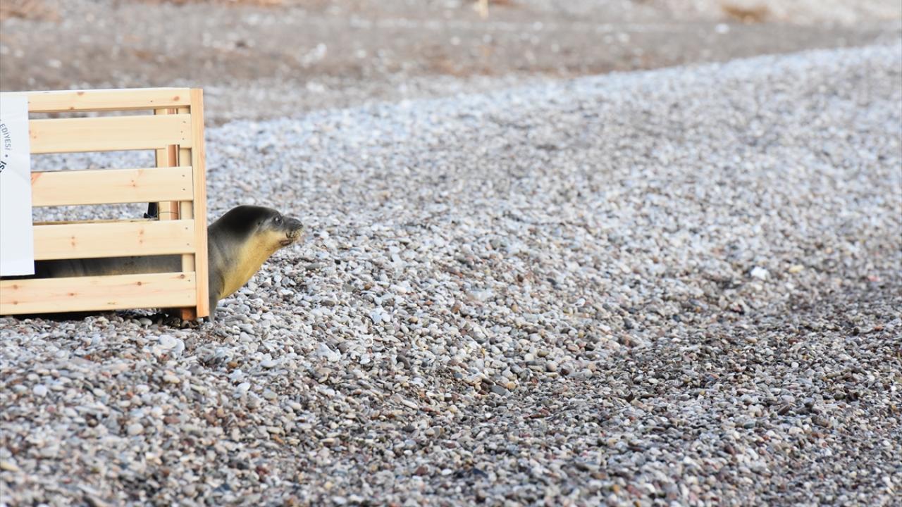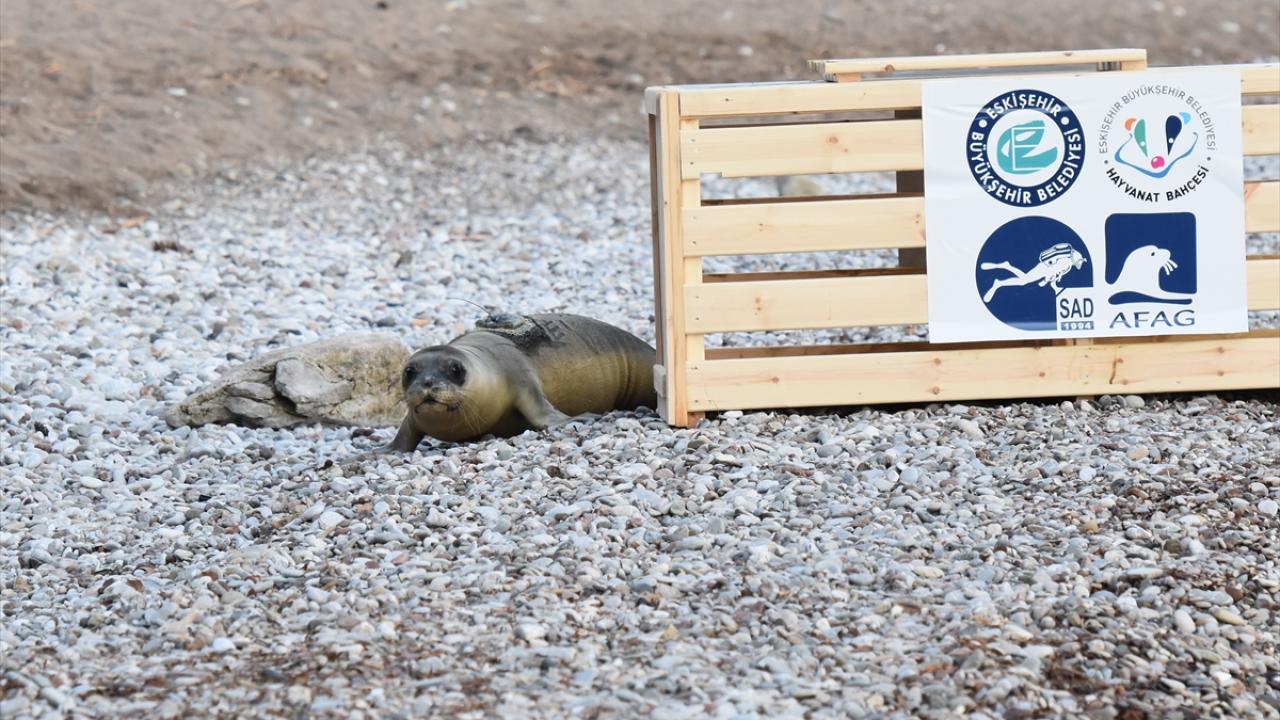 Antalya'da fırtına sonrası kıyıda ölmek üzereyken bulunan Akdeniz foku yavrusu, Eskişehir Hayvanat Bahçesi'ndeki tedavisinin ardından denizle buluşturuldu.